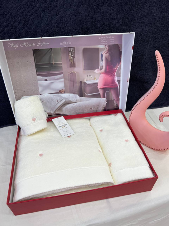 Набір рушників Soft Hearts Maison D’or 3 шт. білий, пудра