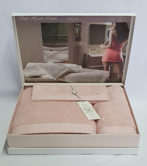 Набір рушників Soft Hearts Maison D’or 3 шт. пудра
