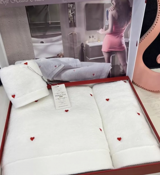 Набір рушників Soft Hearts Maison D’or 3 шт. білий/червоний