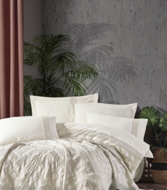 Комплект постільної білизни з покривалом Saheser Ranforce 200 х 220 см Freya Krem