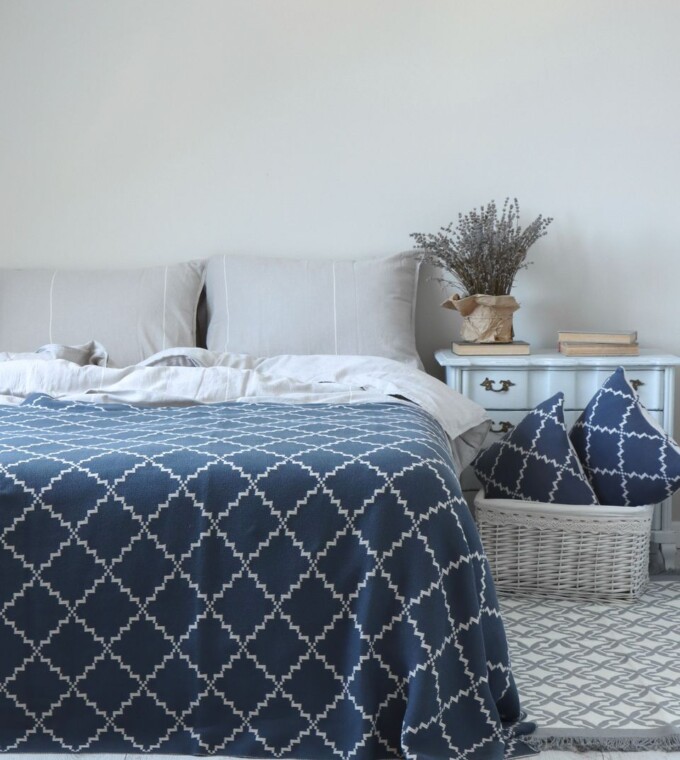 Покривало 150×200 LA MODNO DIAMOND Blueberry-Beige (100% бавовна)