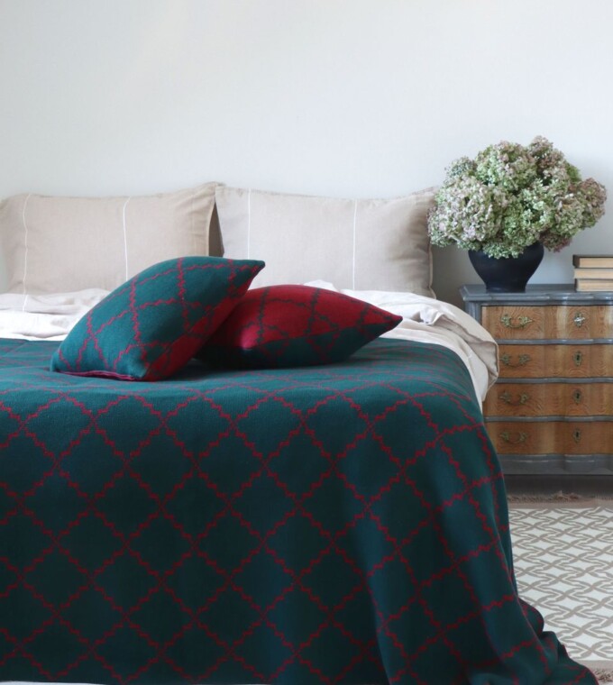 Покривало 150×200 LA MODNO DIAMOND Green-Burgundy (100% бавовна)