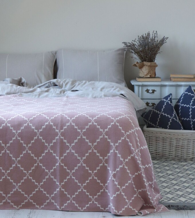 Покривало 150×200 LA MODNO DIAMOND Rose-Ecru (100% бавовна)