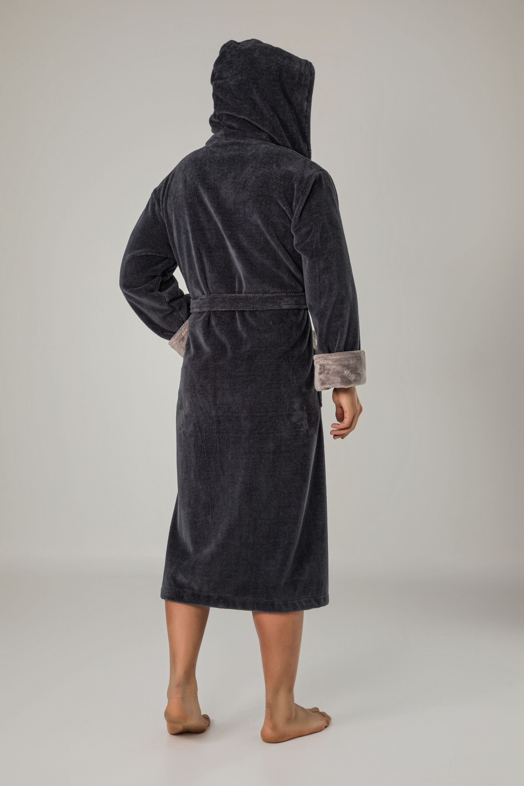Таблиця розмірівДовгий чоловічий велюровий халат від турецької ™Nusa , з двома накладними кишенями, з глибоким каптуром та відкладним коміром, застібається на запах паском. Найкращий варіант зручного та практичного домашнього одягу. Халат виконаний з натуральної махри, де зовнішня частина гладка велюрова, а внутрішня пухнаста махрова. Махра (внутрішня сторона) – приємна на дотик, добре вбирає вологу і пропускає повітря.