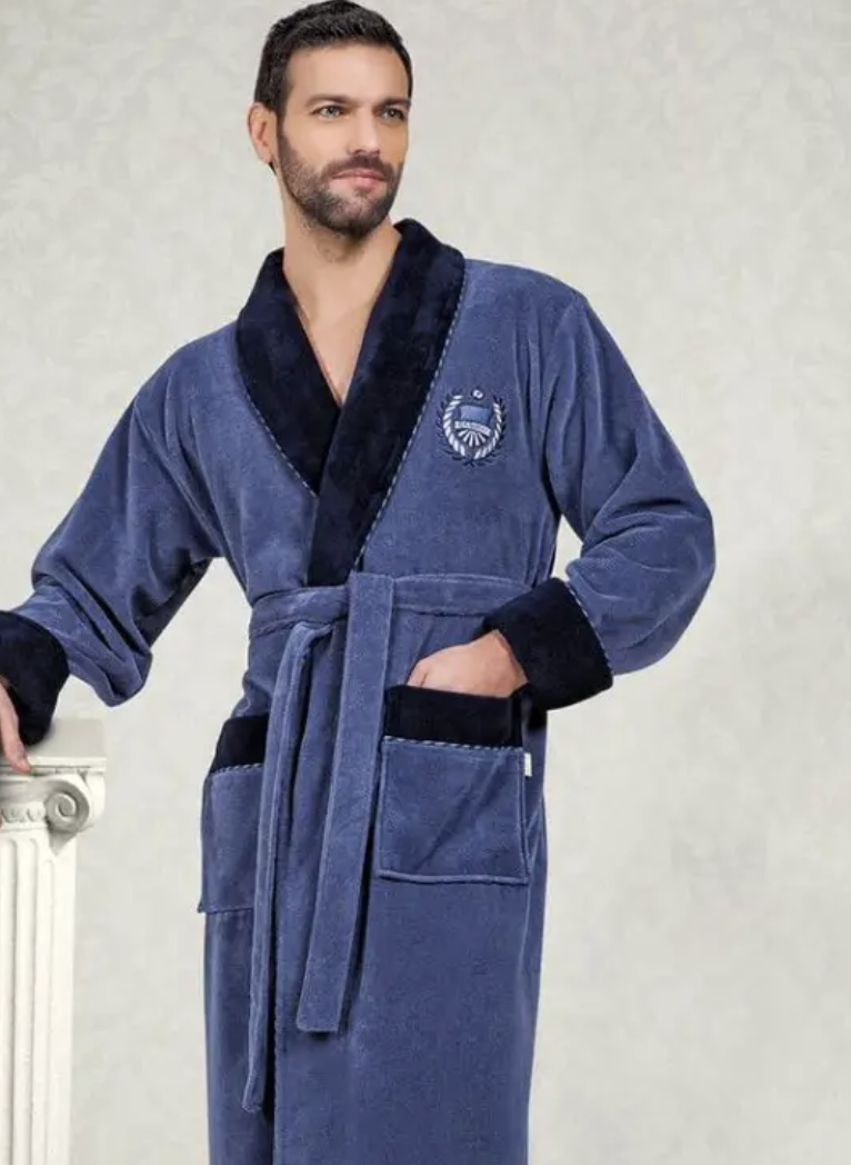 Таблиця розмірівДовгий чоловічий велюровий халат від турецької ™Nusa в двох кольорах кольорах, з двома накладними кишенями, з глибоким каптуром та відкладним коміром, застібається на запах паском. Найкращий варіант зручного та практичного домашнього одягу.