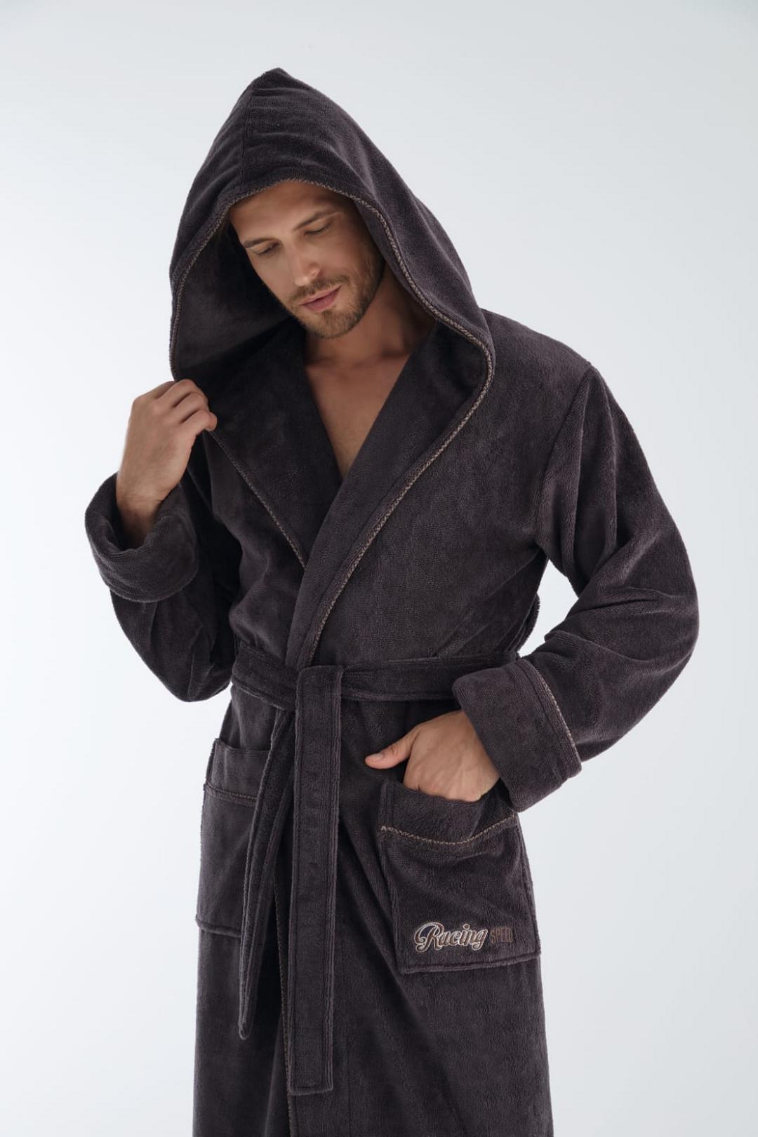 Таблиця розмірівДовгий чоловічий велюровий халат від турецької ™Nusa в молочному кольорі, з двома накладними кишенями, з глибоким каптуром та відкладним коміром, застібається на запах паском. Найкращий варіант зручного та практичного домашнього одягу.