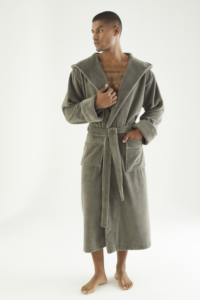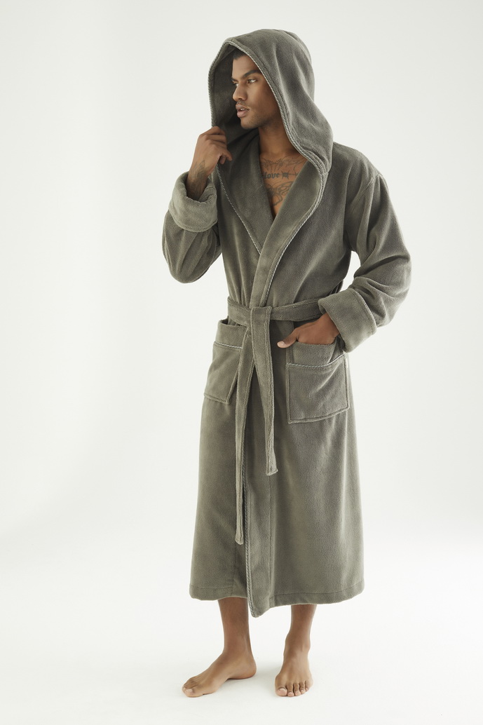 Таблиця розмірівДовгий чоловічий велюровий халат від турецької ™Nusa , з двома накладними кишенями, з глибоким каптуром та відкладним коміром, застібається на запах паском. Найкращий варіант зручного та практичного домашнього одягу. Халат виконаний з натуральної махри, де зовнішня частина гладка велюрова, а внутрішня пухнаста махрова. Махра (внутрішня сторона) – приємна на дотик, добре вбирає вологу і пропускає повітря.