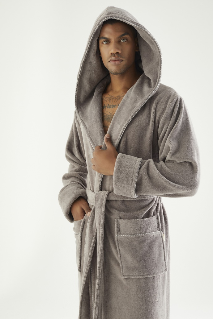 Таблиця розмірівДовгий чоловічий велюровий халат від турецької ™Nusa , з двома накладними кишенями, з глибоким каптуром та відкладним коміром, застібається на запах паском. Найкращий варіант зручного та практичного домашнього одягу. Халат виконаний з натуральної махри, де зовнішня частина гладка велюрова, а внутрішня пухнаста махрова. Махра (внутрішня сторона) – приємна на дотик, добре вбирає вологу і пропускає повітря.