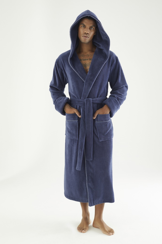 Таблиця розмірівДовгий чоловічий велюровий халат від турецької ™Nusa , з двома накладними кишенями, з глибоким каптуром та відкладним коміром, застібається на запах паском. Найкращий варіант зручного та практичного домашнього одягу. Халат виконаний з натуральної махри, де зовнішня частина гладка велюрова, а внутрішня пухнаста махрова. Махра (внутрішня сторона) – приємна на дотик, добре вбирає вологу і пропускає повітря.