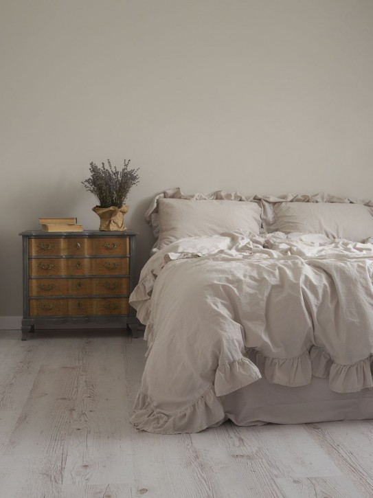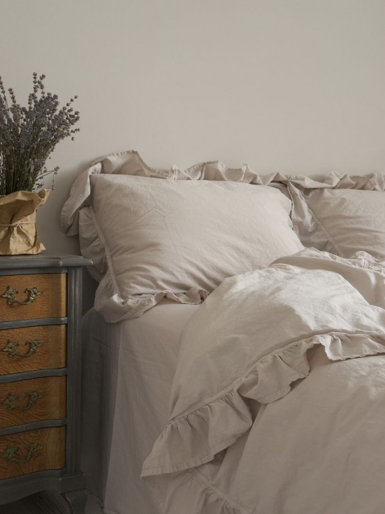 Таблиця розмірівПостільна білизна LIMASSO EXCLUSIVE виготовлена з однотонної бавовняної тканини, у побуті більш відома як “варена бавовна”. Тканина ще на виробництві піддається значній тепловій та вологій обробці, внаслідок чого відбувається її усадка з придбанням незначного тисненого ефекту. Цей метод обробки тканини ще називають “прання з камінням” (stone wash). Тканина міцна та легка, не сідає, не деформується і не потребує прасування. На дотик постільна білизна м’яка, ніжна та повітряна, як мовиться, тіло в ній дихає. Мінімалізм фарб в поєднанні з розкішною фактурою – прикрасять і вдосконалять ваш інтерʼєр. На підковдрі рюш, застібка гудзики. На двох наволочках рюш. Ширина рюш 10 см.