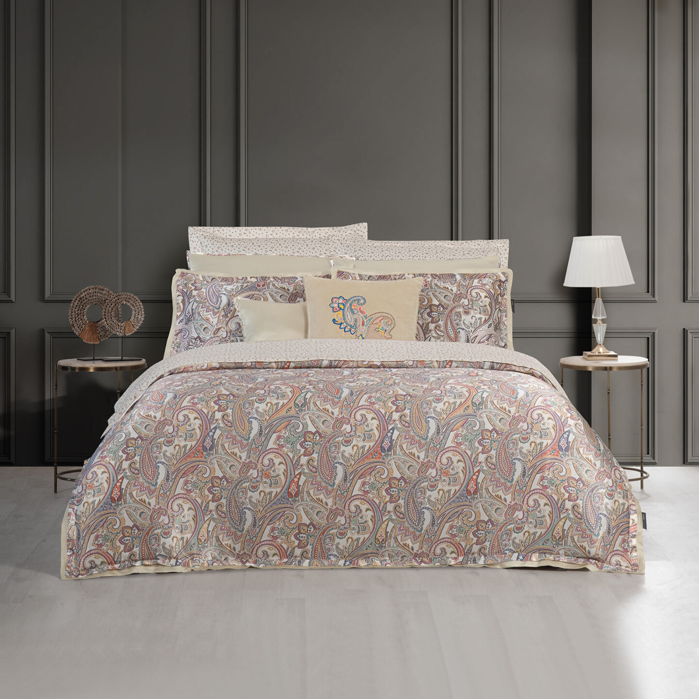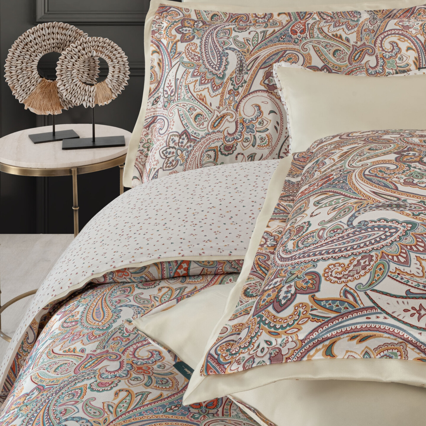 Елітний комплект Sarev Elite, виготовлений зі 100% натурального шовку. Яскравий принт дарує неперевершені тактильні відчуття, прохолоду влітку та преміальний блиск.
