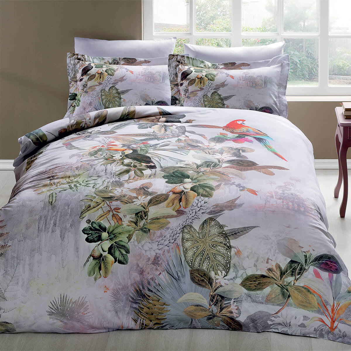 Tivolyo Home є преміальними турецьким брендом широко відомим на європейському ринку. Вся продукція виконана під ретельним контролем фахівців, тільки з високоякісних матеріалів з урахуванням усіх сучасних тенденцій в світі моди. У колекції сатин де люкс в основному використовується квітковий орнамент в поєднанні з однотоннім простирадлом ідеально підібранім в колір. Вироби дбайливо складені в подарункову упаковку з фірмовим логотипом.