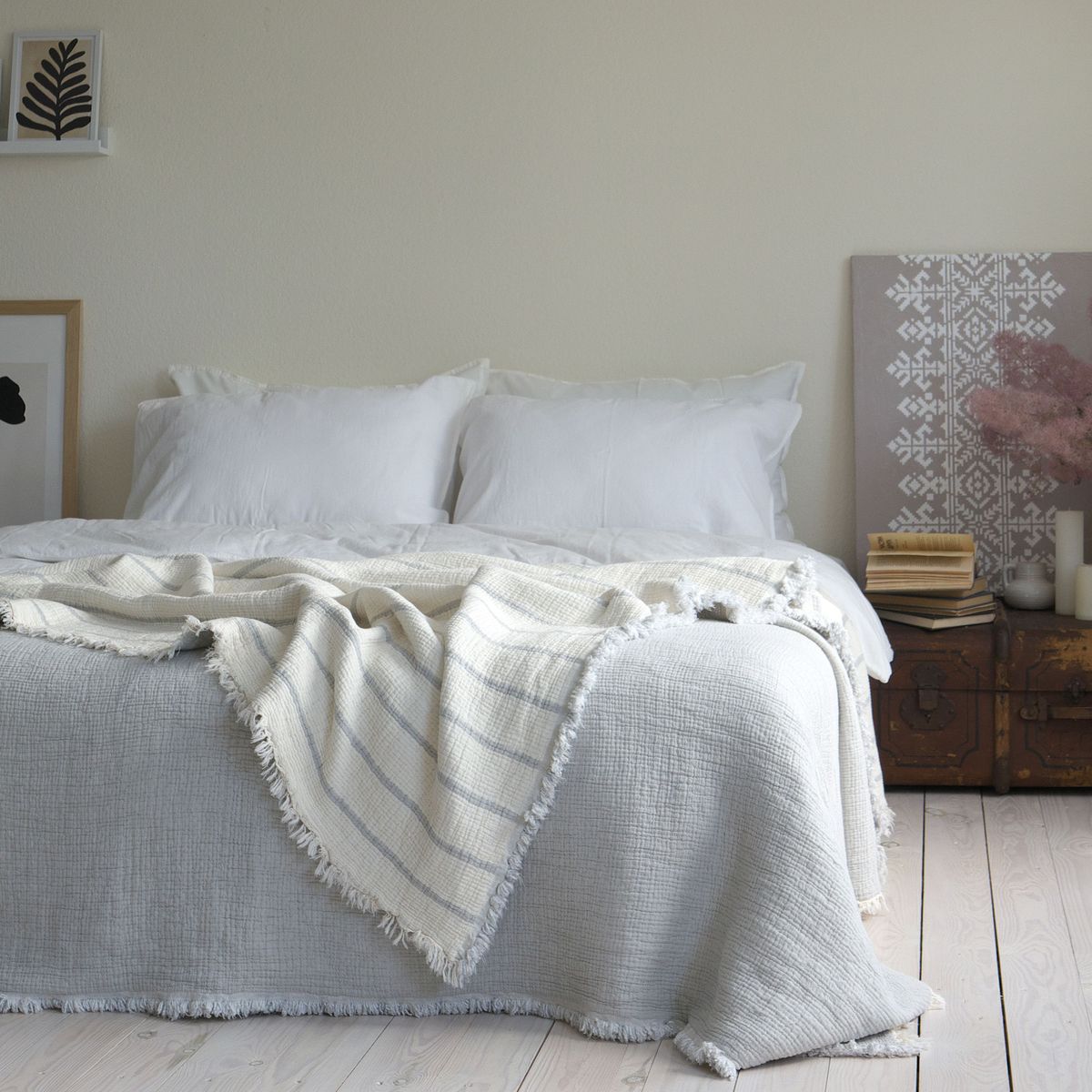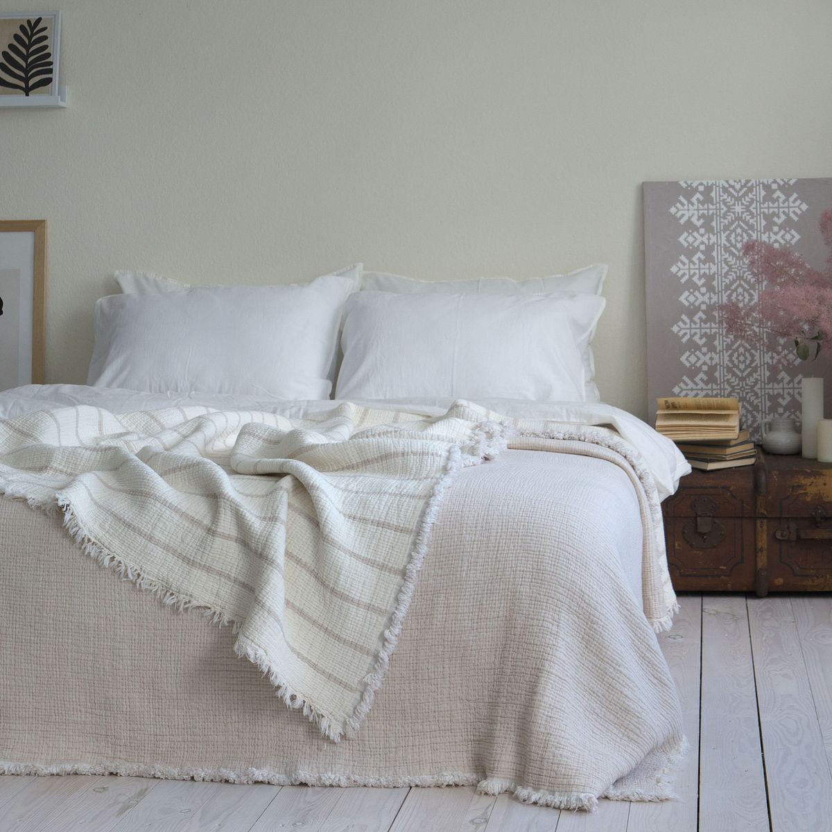 Муслінове покривало легке, мʼяке та ніжне на дотик, що робить його дуже приємним при контакті зі шкірою. Покривало має відмінні повітропроникні властивості, дозволяючи регулювати температуру тіла під час сну. Швидко вбирає зайву вологу та запобігає утворенню попрілостей. Після прання стає ще м’якішим та не змінює зовнішній вигляд. Швидко сохне та не вимагає прасування після прання. Щоденне використання муслінового покривала створить надзвичайно комфортні умови для відпочинку та релаксації дорослих і дітей.