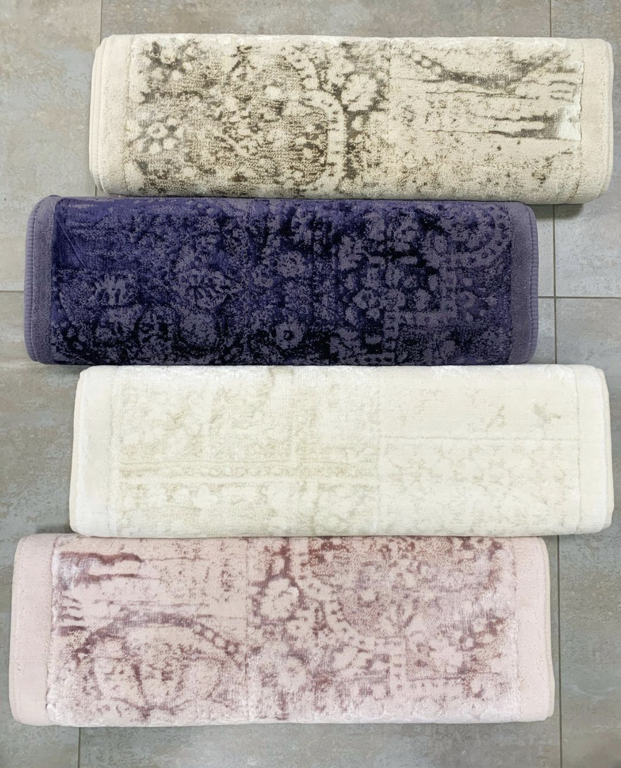 Килимки виготовлені з бавовняного волокна на бавовняній основі. Машинне прання в домашніх умовах.