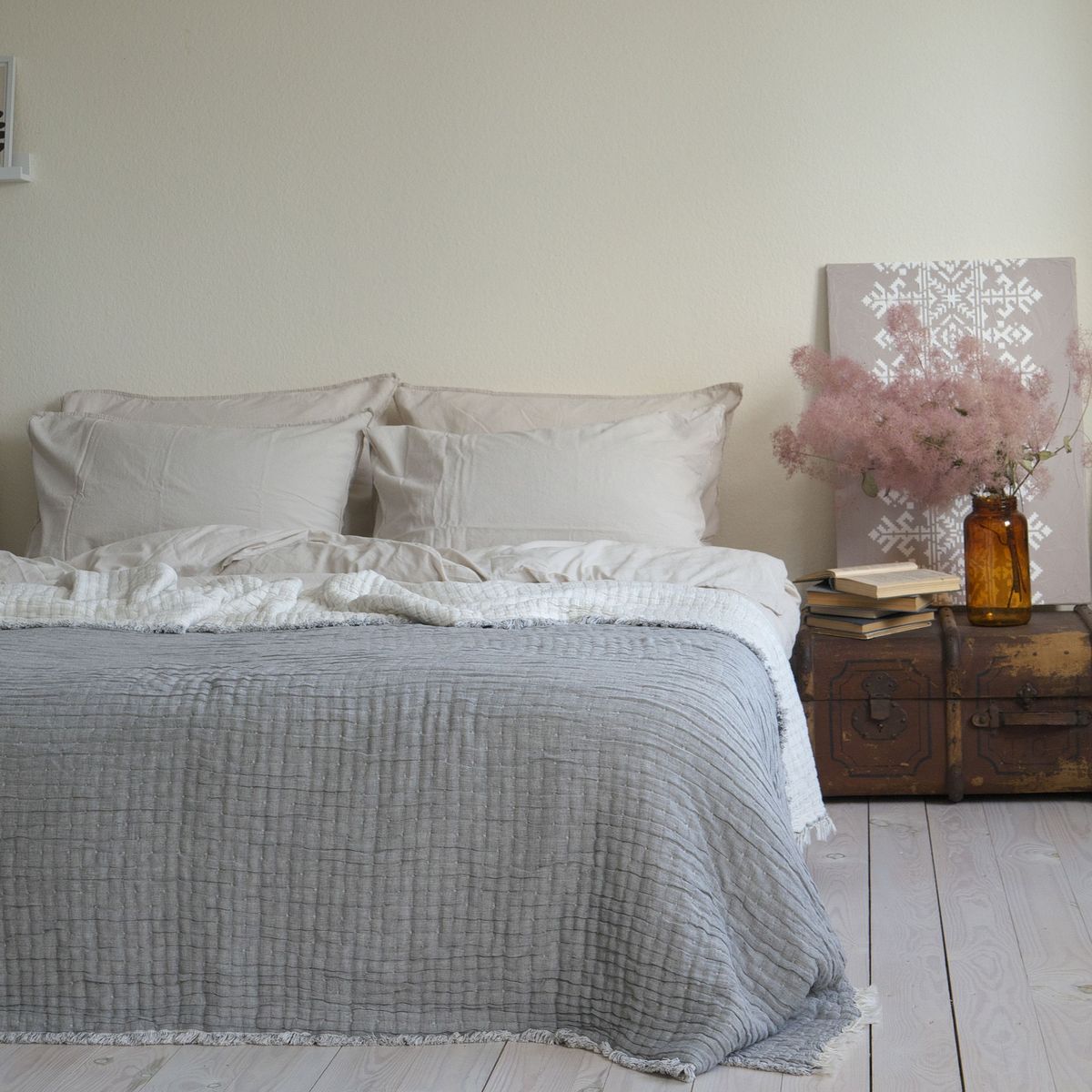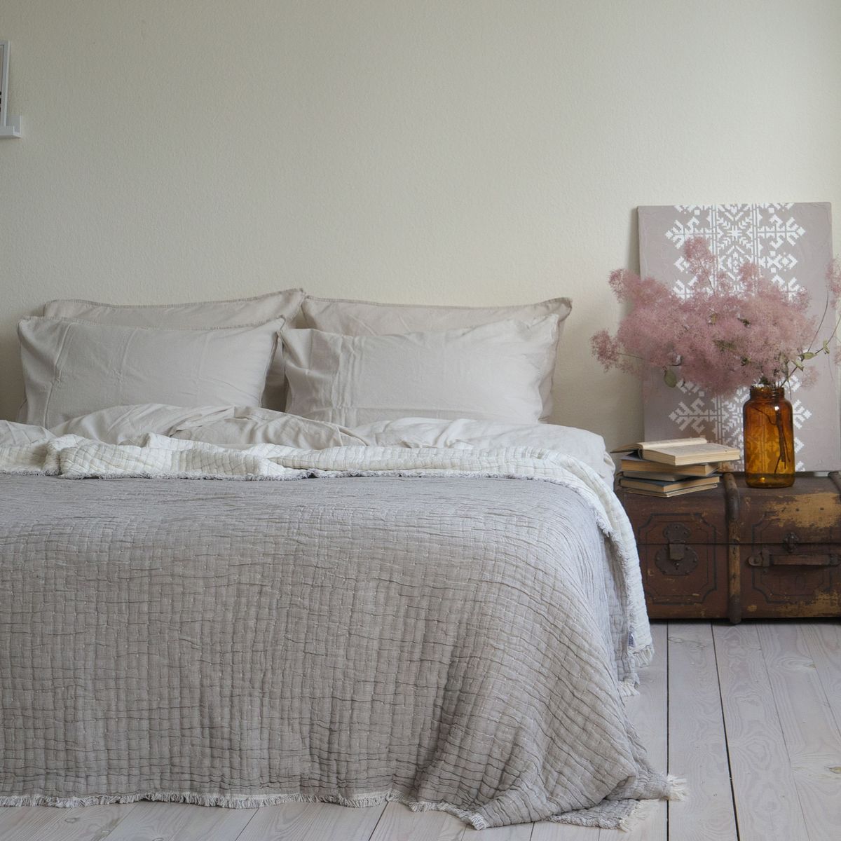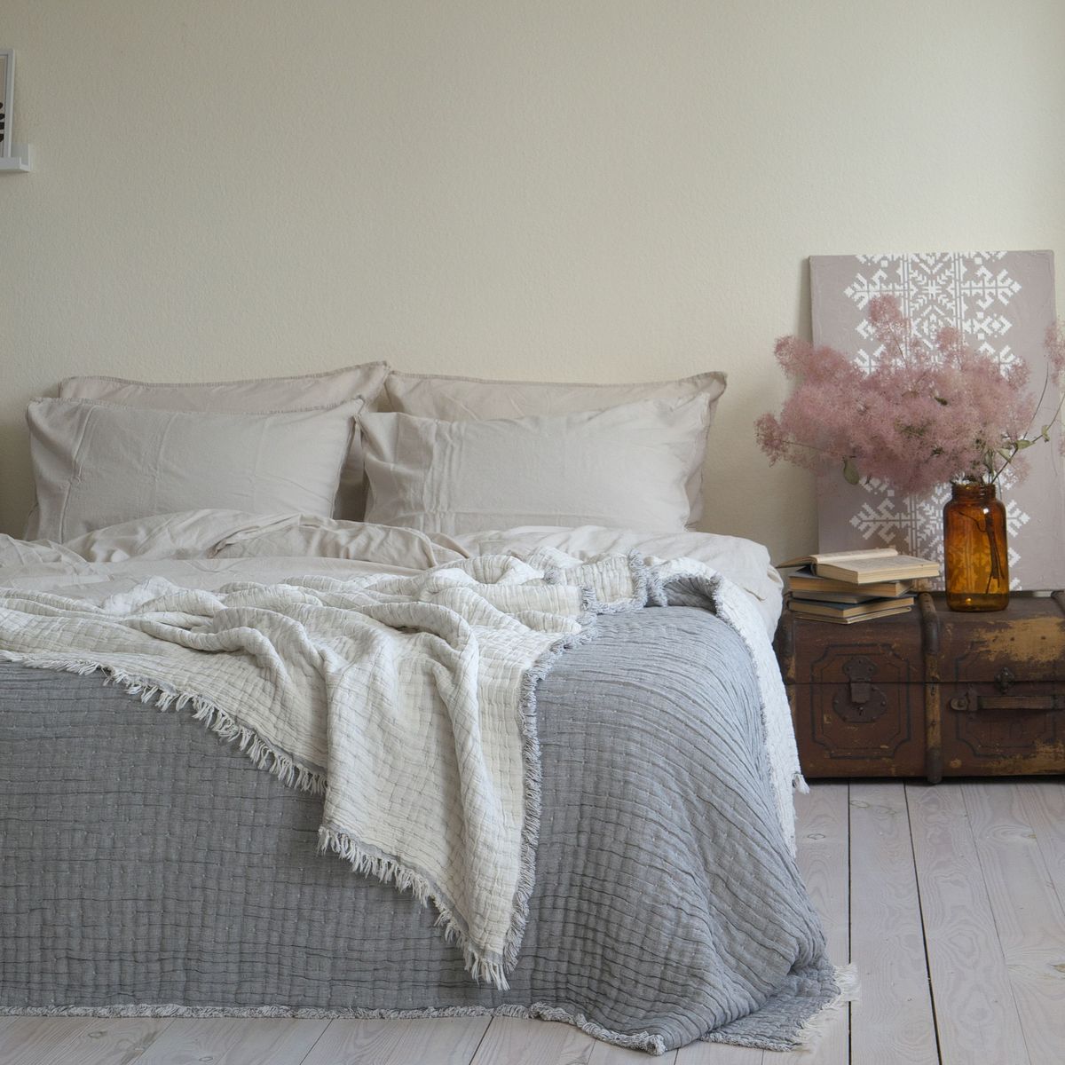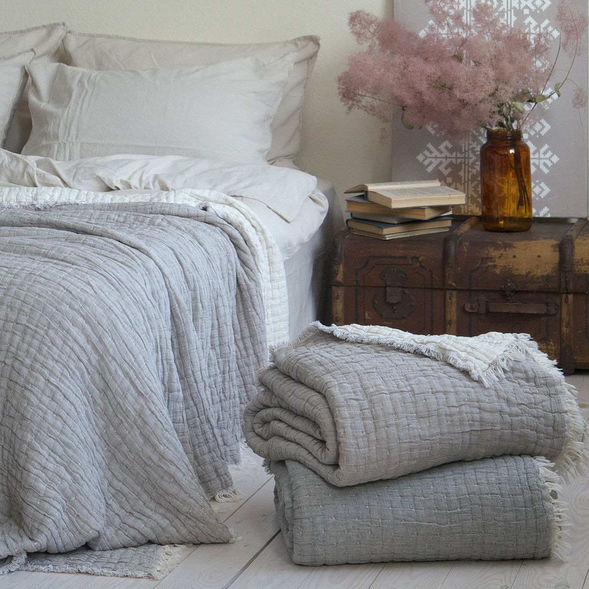 Муслінове покривало легке, мʼяке та ніжне на дотик, що робить його дуже приємним при контакті зі шкірою. Покривало має відмінні повітропроникні властивості, дозволяючи регулювати температуру тіла під час сну. Швидко вбирає зайву вологу та запобігає утворенню попрілостей. Після прання стає ще м’якішим та не змінює зовнішній вигляд. Швидко сохне та не вимагає прасування після прання. Щоденне використання муслінового покривала створить надзвичайно комфортні умови для відпочинку та релаксації дорослих і дітей.