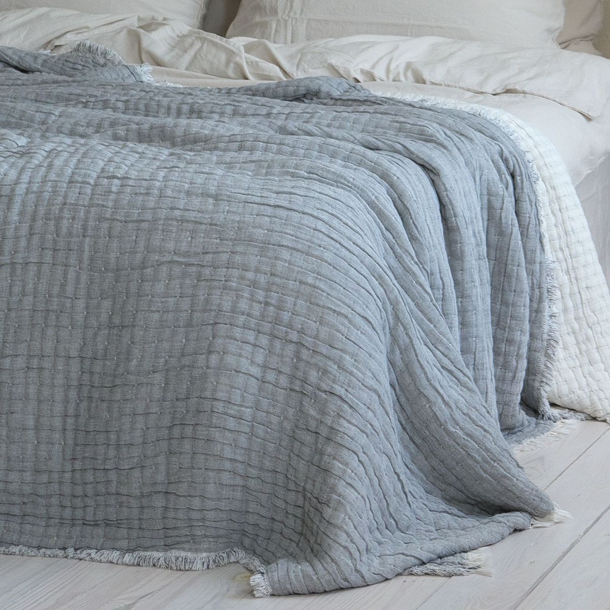 Муслінове покривало легке, мʼяке та ніжне на дотик, що робить його дуже приємним при контакті зі шкірою. Покривало має відмінні повітропроникні властивості, дозволяючи регулювати температуру тіла під час сну. Швидко вбирає зайву вологу та запобігає утворенню попрілостей. Після прання стає ще м’якішим та не змінює зовнішній вигляд. Швидко сохне та не вимагає прасування після прання. Щоденне використання муслінового покривала створить надзвичайно комфортні умови для відпочинку та релаксації дорослих і дітей.