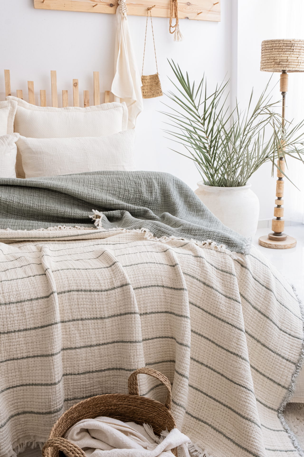 Представляємо вашій увазі покривало з неймовірно м’якого мусліну, виробника Saheser . Воно поєднує в собі комфорт, міцність і естетичність, створюючи ідеальне середовище для спокійного сну та відпочинку.