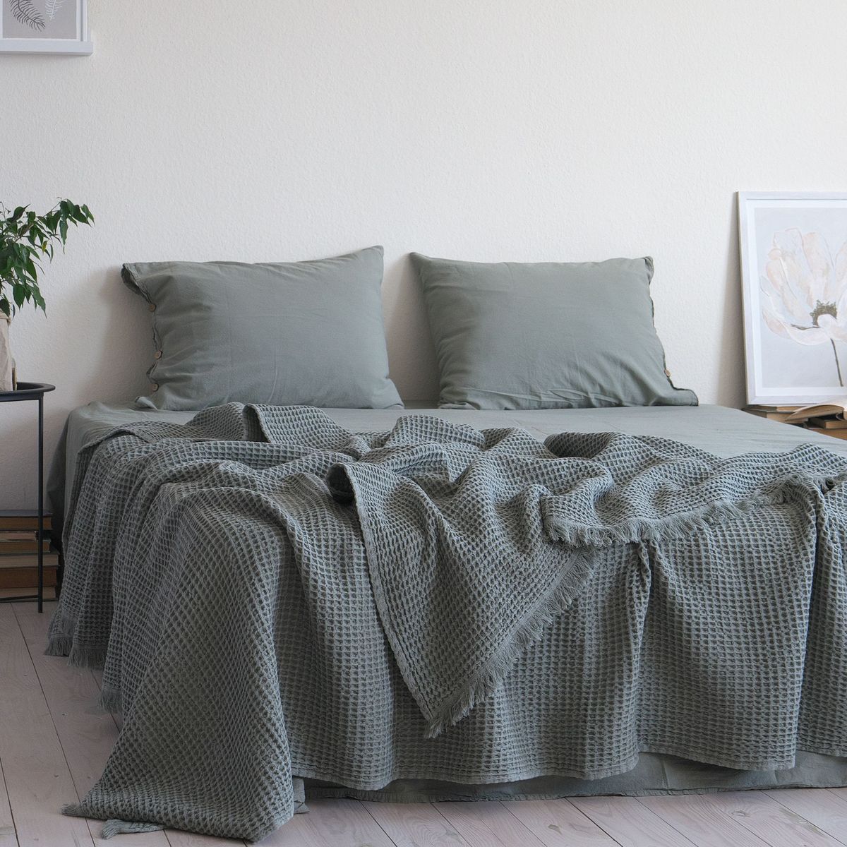 Дизайн цього покривала також не залишає байдужим. Стильний ефект stonewashed надає йому елегантного вінтажного вигляду, що додає інтер’єру сучасності та елегантності. Цей варіант підходить для різних інтер’єрів, легко комбінується з іншими елементами декору та додає нотку розкоші в будь-яку кімнату.