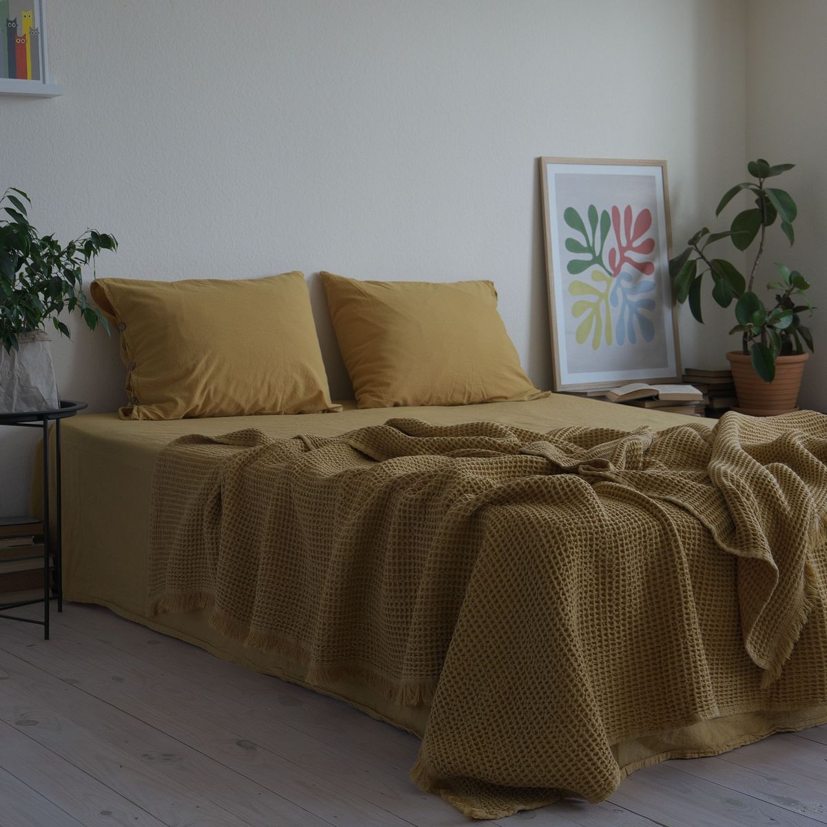 Дизайн цього покривала також не залишає байдужим. Стильний ефект stonewashed надає йому елегантного вінтажного вигляду, що додає інтер’єру сучасності та елегантності. Цей варіант підходить для різних інтер’єрів, легко комбінується з іншими елементами декору та додає нотку розкоші в будь-яку кімнату.