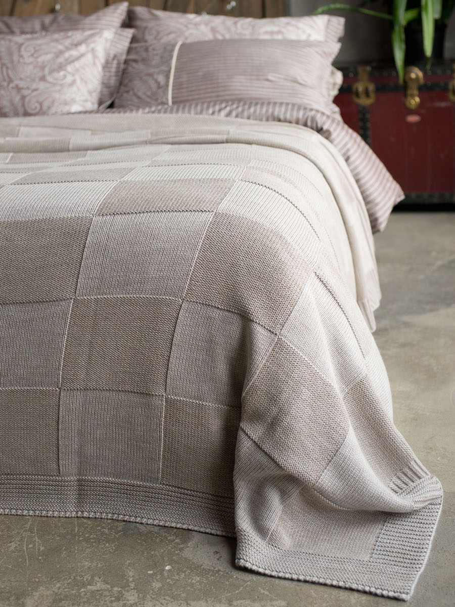 Стильне вʼязане покривало ASPEN. Покривало виготовлено меланжевою ниткою візерунком квадрати. По периметру покривала кант. Унікальність такого геометричного малюнку в тому, що його можна використовувати в багатьох стилях інтер’єрів. Покривало щільне, м’яке і приємне до тіла. За своїми властивостями має високу міцність і світлостійкість, а також має антибактеріальні та гіпоалергенні характеристики.