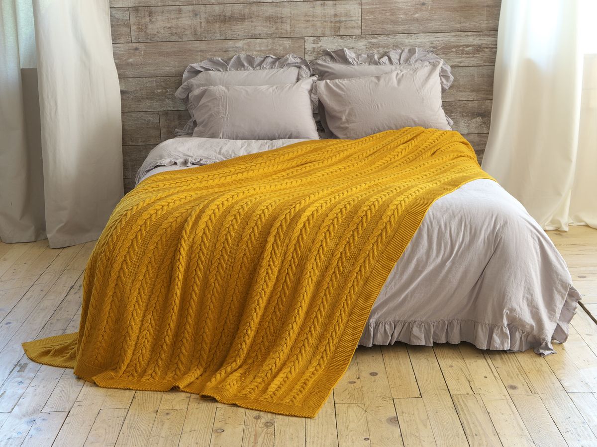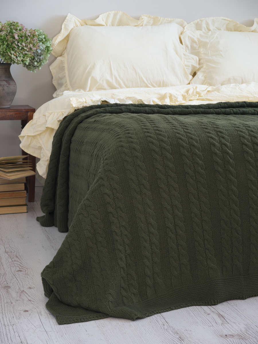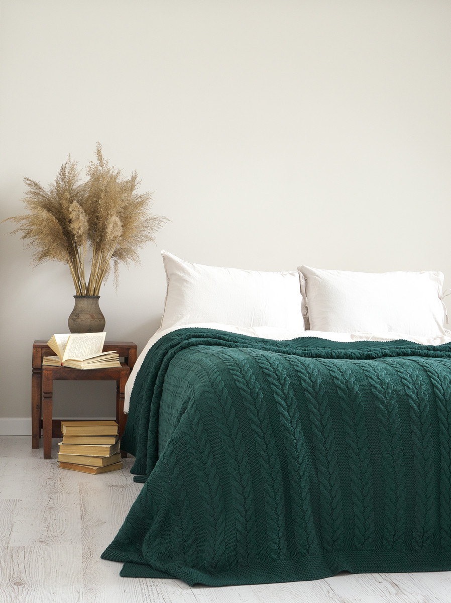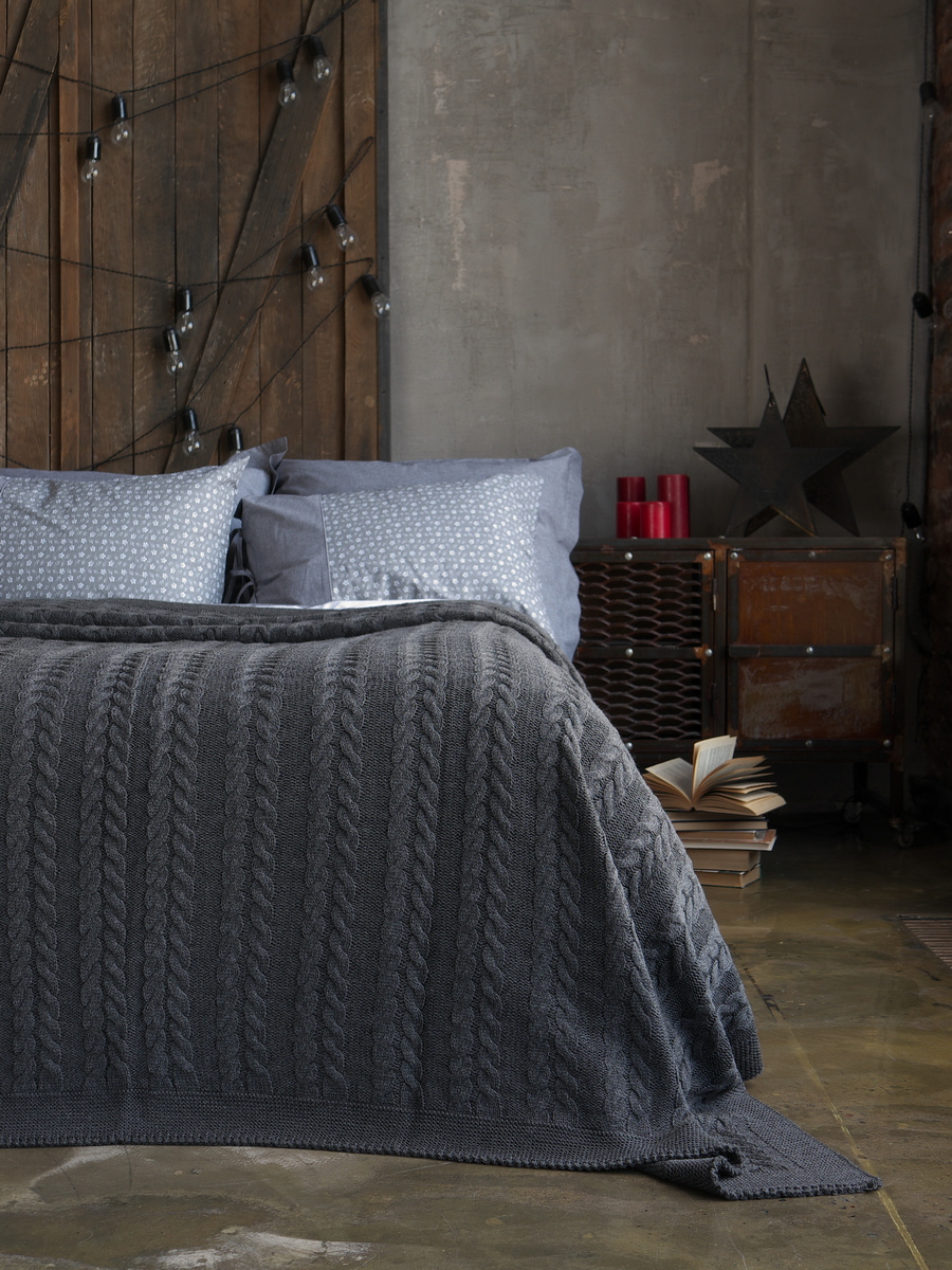 Фактурне в’язане покривало BETIRES BREMEN виготовлено з м’якої та приємної до тіла акрилової пряжі. За своїми властивостями має високу міцність і світлостійкість, а також має антибактеріальні та гіпоалергенні характеристики. Візерунок в’язання – коси по довжині полотна. По периметру покривала кант.