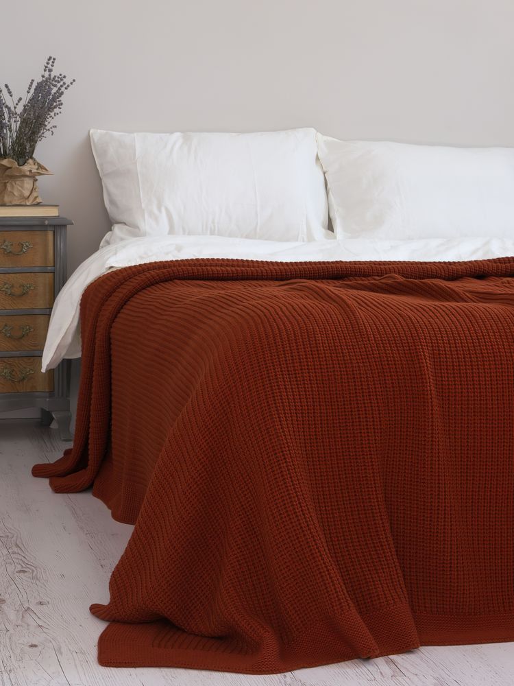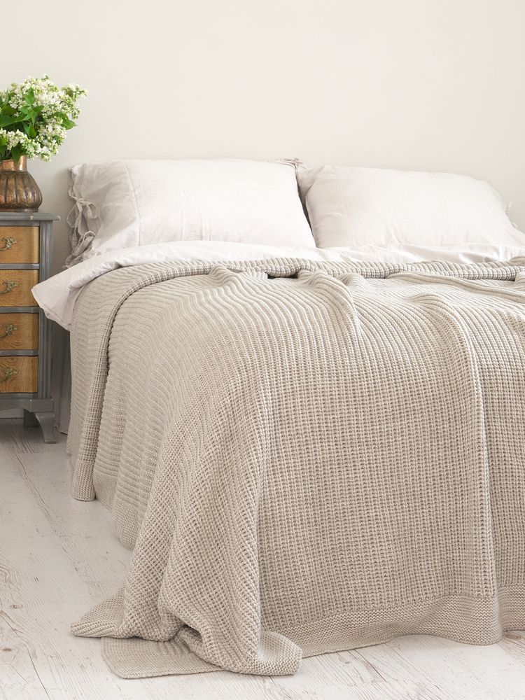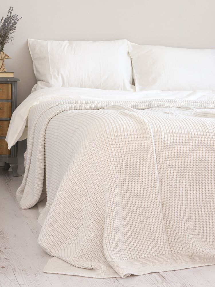 Покривало виготовлене з бавовняної та акрилової пряжі бежевого кольору. Поєднання бавовняної та акрилової пряжі надають виробу наступні характеристики: міцність форми, високу зносостійкість, гігроскопічність. Покривало не мнеться і не дає усадки. На дотик м’яке і приємне до тіла. По периметру покривала кант.