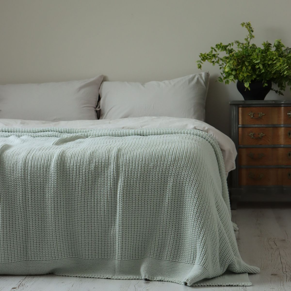 Покривало виготовлене з бавовняної та акрилової пряжі бежевого кольору. Поєднання бавовняної та акрилової пряжі надають виробу наступні характеристики: міцність форми, високу зносостійкість, гігроскопічність. Покривало не мнеться і не дає усадки. На дотик м’яке і приємне до тіла. По периметру покривала кант.