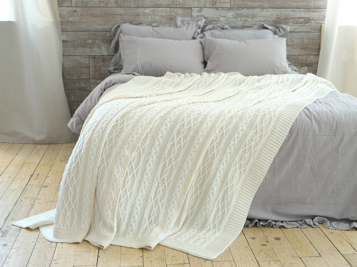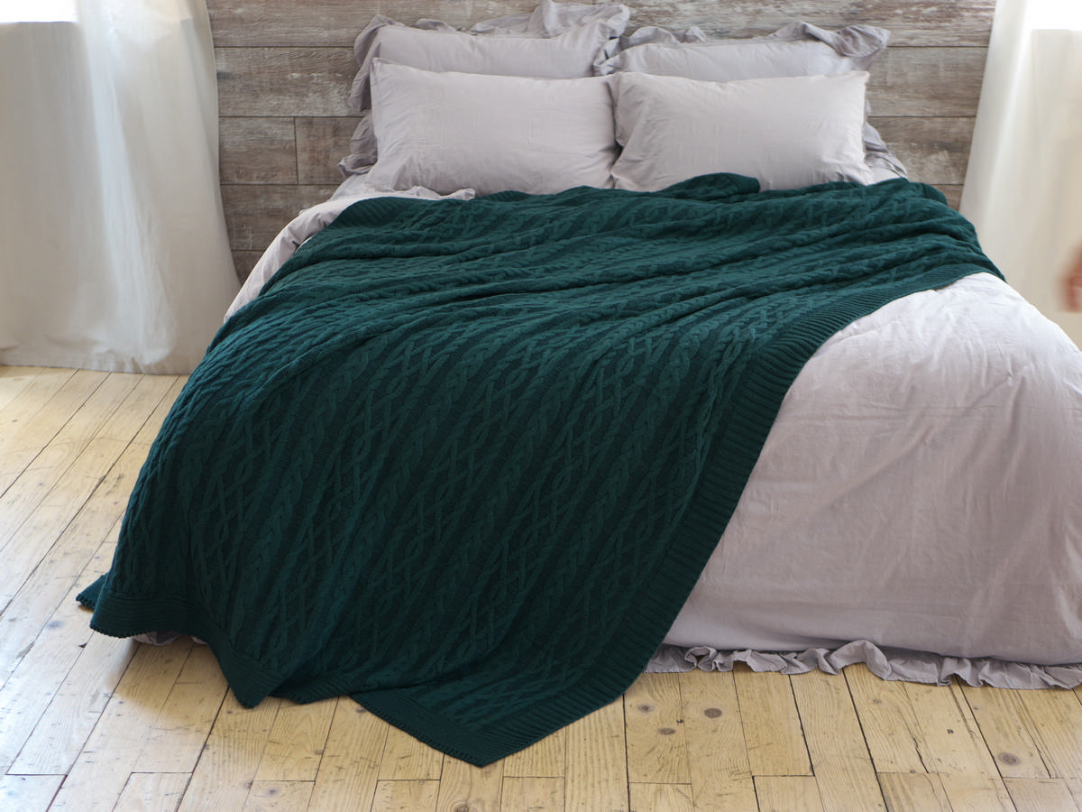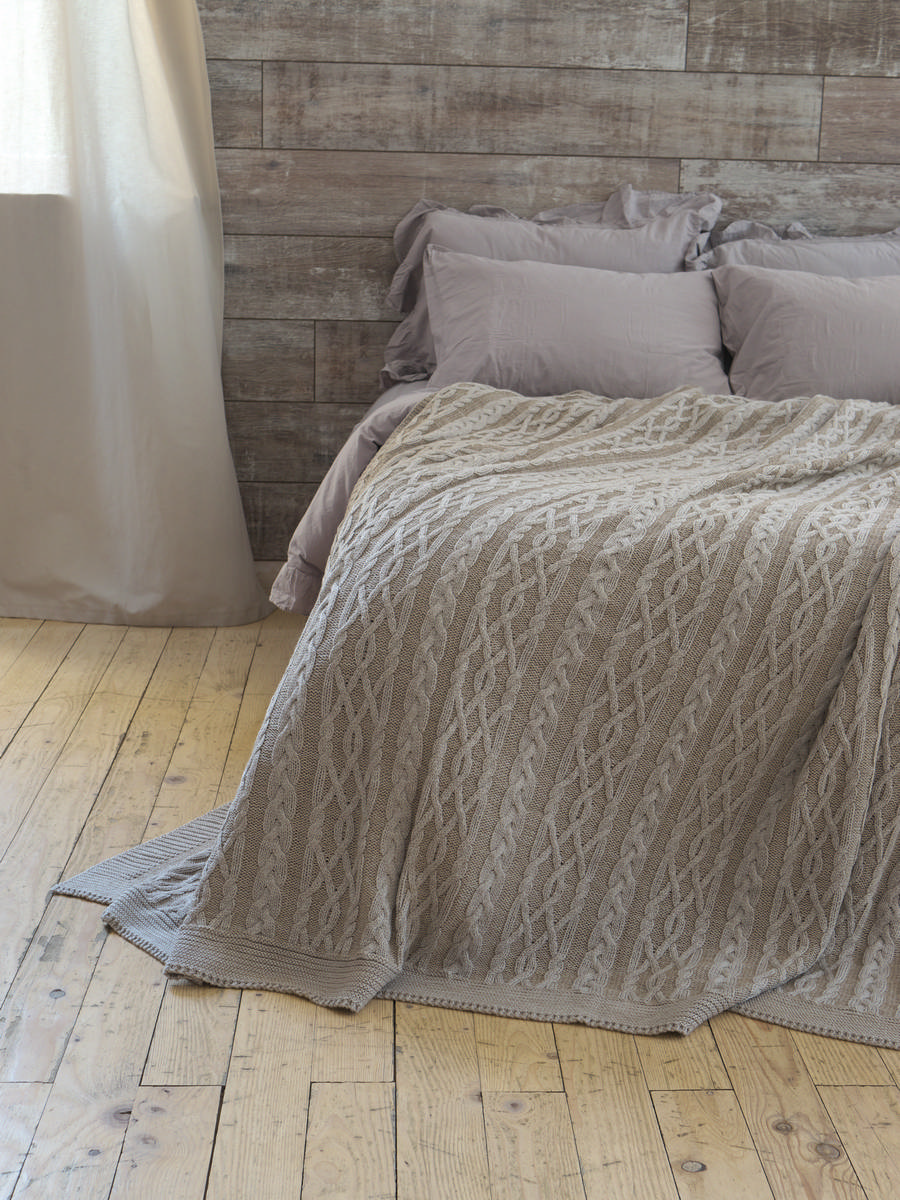Вʼязане покривало BETIRES DOLCE. Візерунок коси. По периметру покривала кант. Покривало щільне, м’яке і приємне до тіла. За своїми властивостями має високу міцність і світлостійкість, а також має антибактеріальні та гіпоалергенні характеристики.