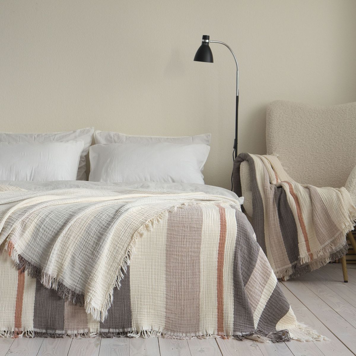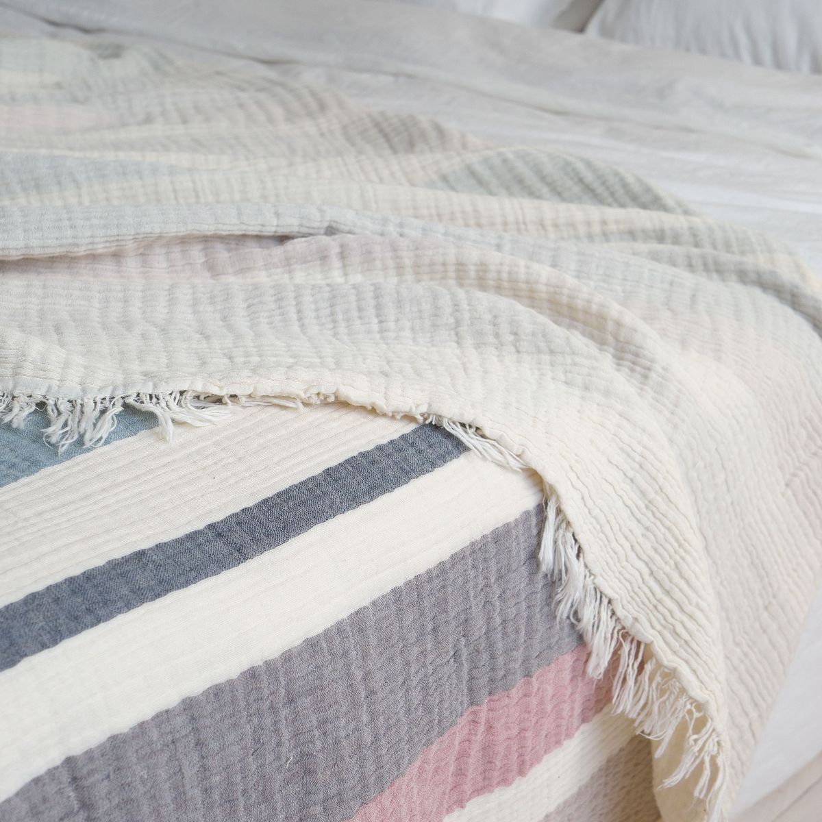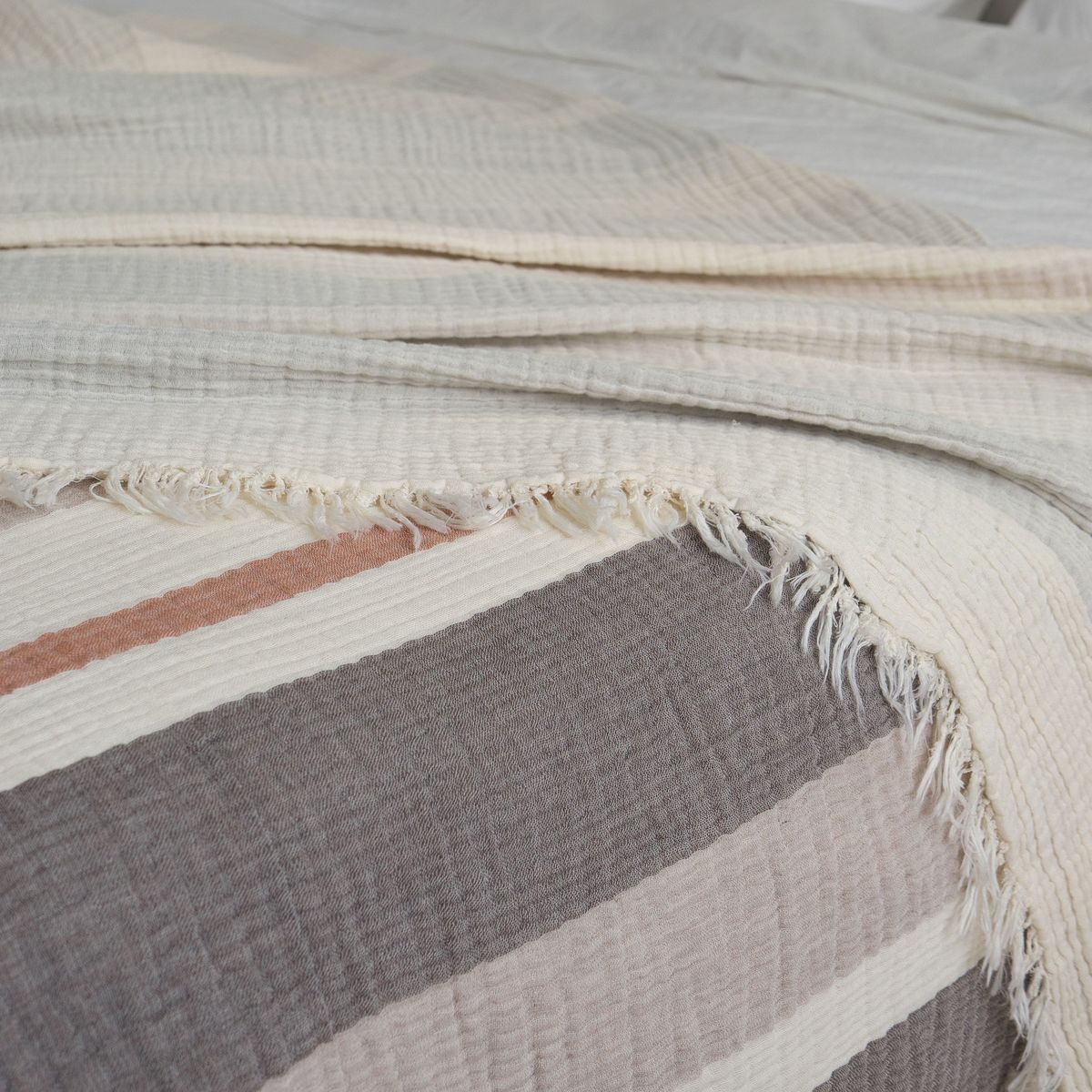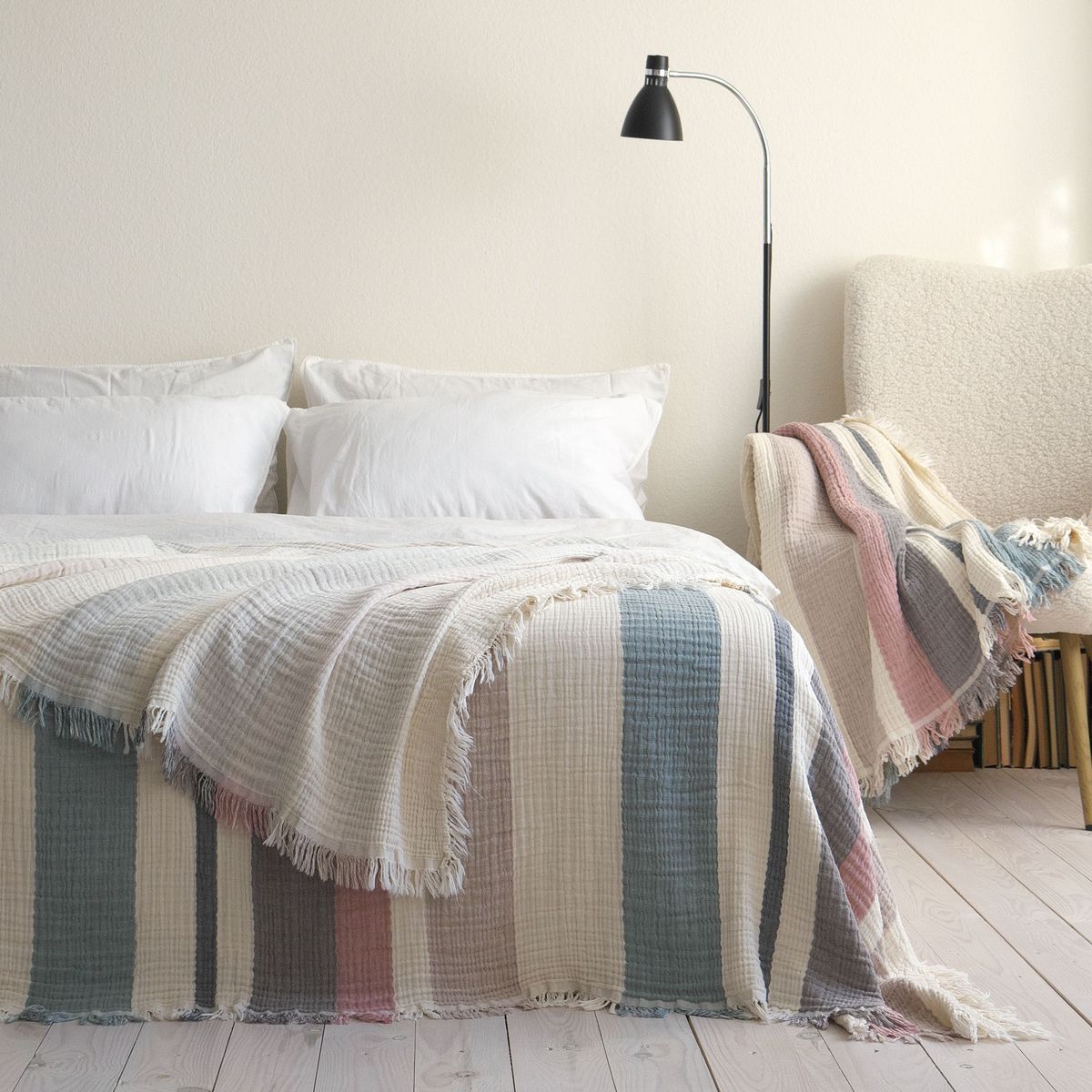 Муслінове покривало LA MODNO CHARMING складається з 4-х шарів тонкого мусліну зробленого з органічної бавовни. Завдяки особливій технології виготовлення та використання натуральної сировини, покривало з мусліну має багато переваг та пріоритетів. Муслінове покривало легке, мʼяке та ніжне на дотик, що робить його дуже приємним при контакті зі шкірою. Покривало має відмінні повітропроникні властивості, дозволяючи регулювати температуру тіла під час сну. Швидко вбирає зайву вологу та запобігає утворенню попрілостей. Після прання стає ще м’якішим та не змінює зовнішній вигляд. Швидко сохне та не вимагає прасування після прання. Щоденне використання муслінового покривала створить надзвичайно комфортні умови для відпочинку та релаксації дорослих і дітей. Делікатне прання при t 40C, без використання засобів з відбілюючими властивостями.