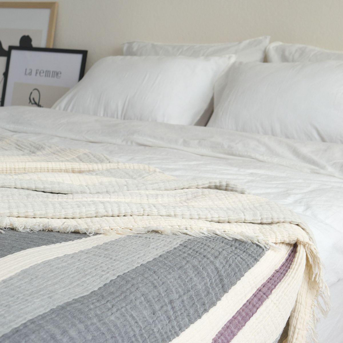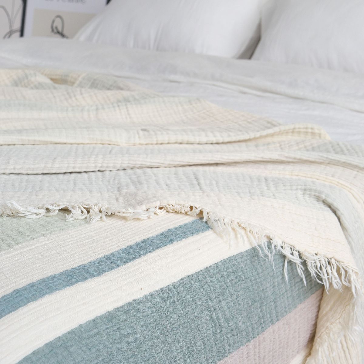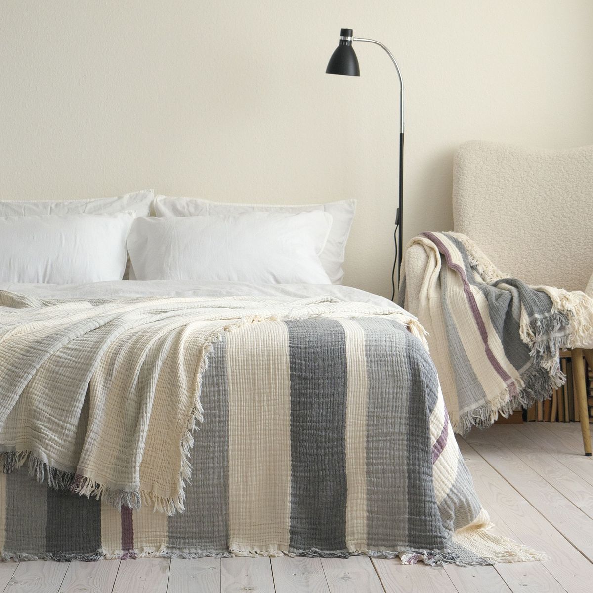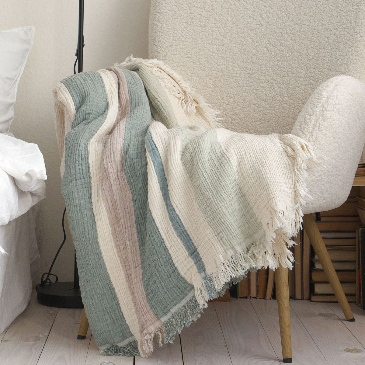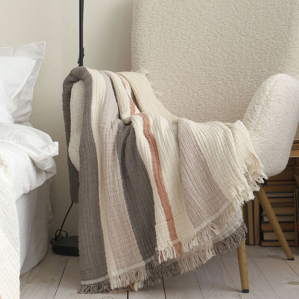 Муслінове покривало LA MODNO CHARMING складається з 4-х шарів тонкого мусліну зробленого з органічної бавовни. Завдяки особливій технології виготовлення та використання натуральної сировини, покривало з мусліну має багато переваг та пріоритетів. Муслінове покривало легке, мʼяке та ніжне на дотик, що робить його дуже приємним при контакті зі шкірою. Покривало має відмінні повітропроникні властивості, дозволяючи регулювати температуру тіла під час сну. Швидко вбирає зайву вологу та запобігає утворенню попрілостей. Після прання стає ще м’якішим та не змінює зовнішній вигляд. Швидко сохне та не вимагає прасування після прання. Щоденне використання муслінового покривала створить надзвичайно комфортні умови для відпочинку та релаксації дорослих і дітей. Делікатне прання при t 40C, без використання засобів з відбілюючими властивостями.