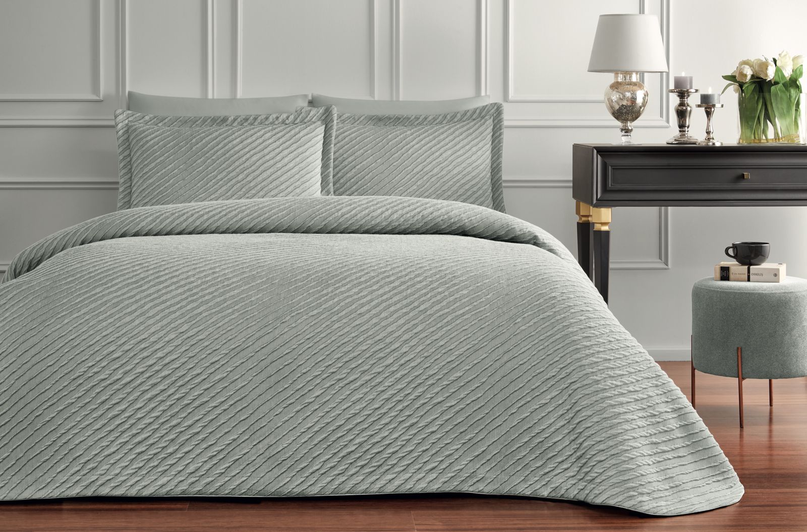 Жакардове покривало Tivolyo Home з виразним стильним візерунком. Приємне на дотик, м’яке та практичне – це покривало обов’язково стане одним із улюблених у Вашій Спальні. Виразний рельєфний візерунок на покривалі притягує погляд.