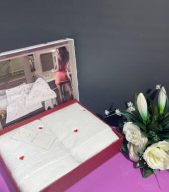 Набор полотенец Soft Hearts Maison D’or 2 шт. white-red