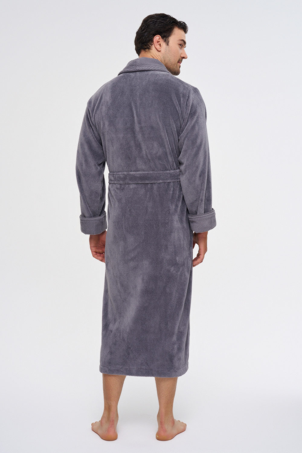 Элегантный мужской халат, невероятно нежный и мягкий на ощупь, легко и быстро впитывает влагу. Выполнен в стиле кимоно с поясом, имеет накладные карманы, средняя длина.