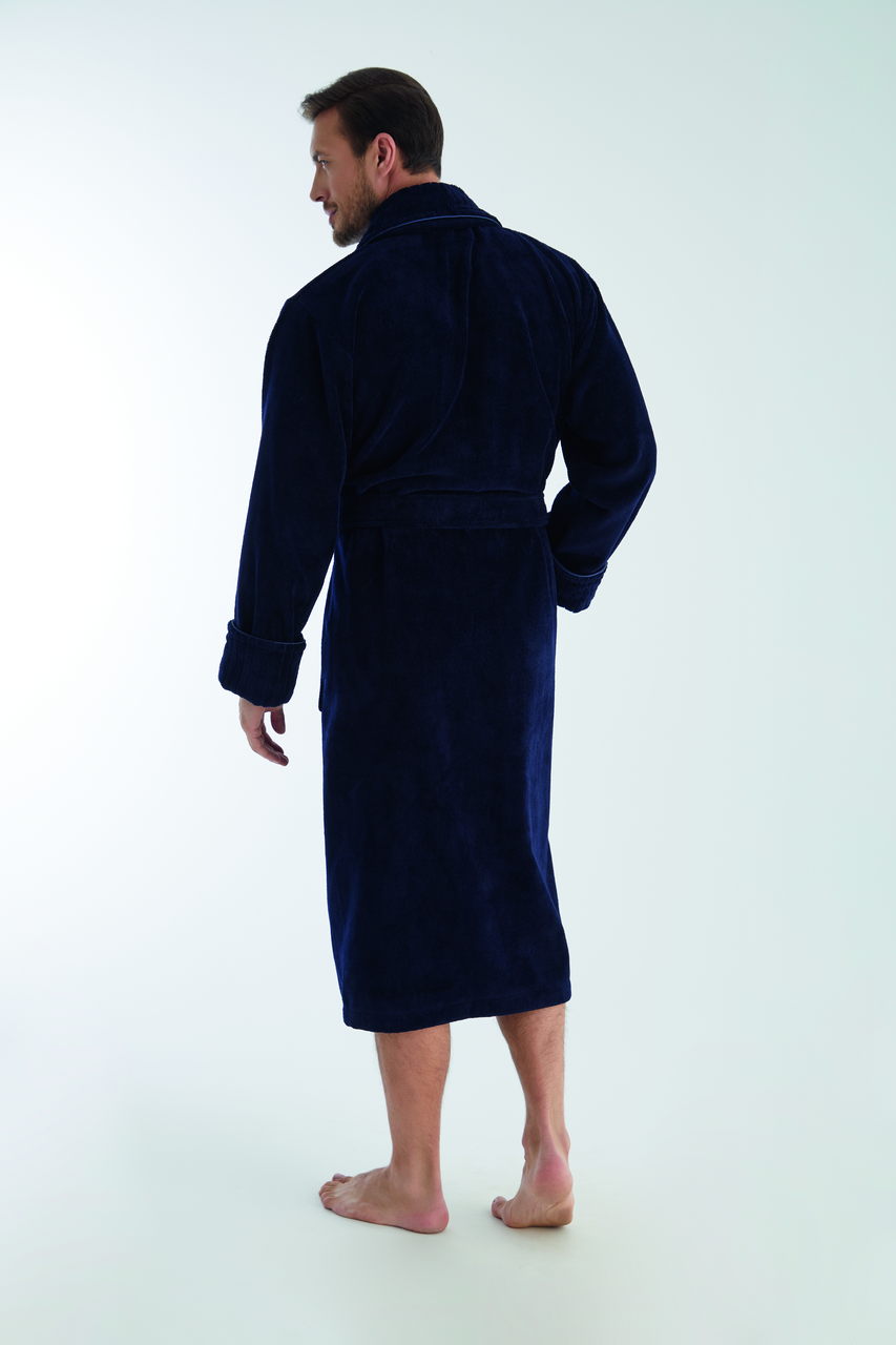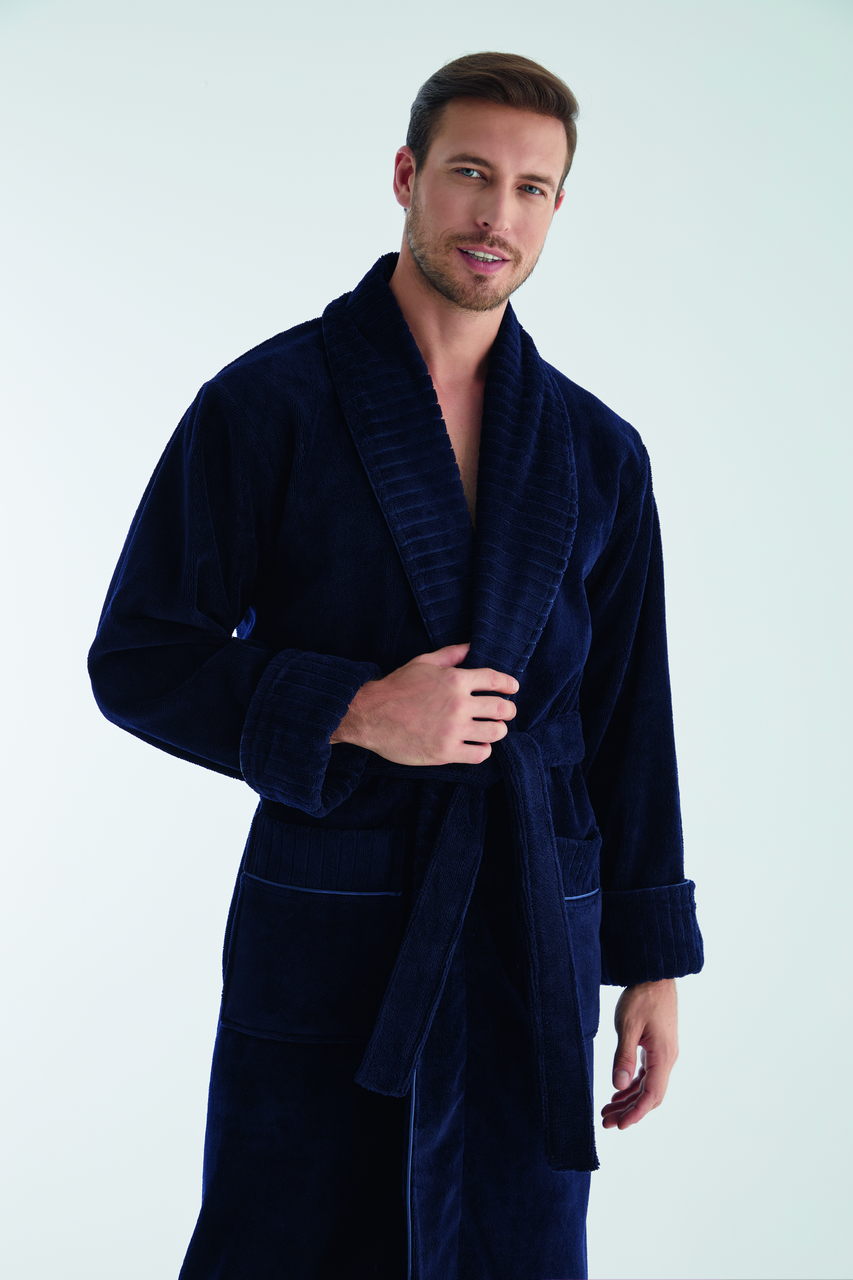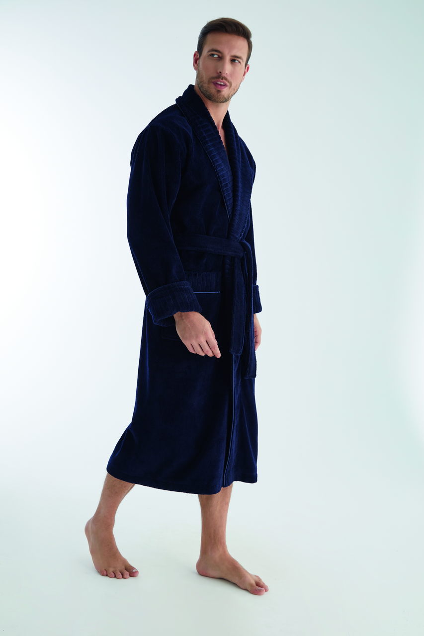Элегантный мужской халат, невероятно нежный и мягкий на ощупь, легко и быстро впитывает влагу. Выполнен в стиле кимоно с поясом, имеет накладные карманы, средняя длина.