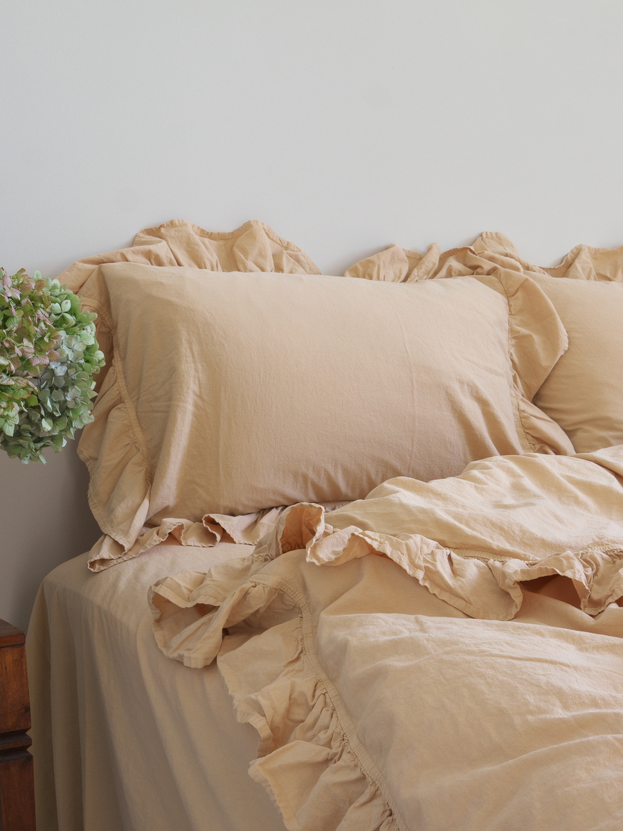 Таблица размеровПостельное белье LIMASSO EXCLUSIVE изготовлено из однотонной хлопковой ткани, более известной в быту как “вареный хлопок”. Ткань подвергается значительной тепловой и влажной обработке ещё на производстве, в результате чего она немного усаживается и приобретает лёгкий жатый эффект. Этот метод обработки ткани также называют “стиркой с камнями” (stone wash). Ткань прочная и легкая, не садится, не деформируется и не требует глажки. На ощупь постельное белье мягкое, нежное и воздушное, как говорят, “тело в нём дышит”. Минимализм цветов в сочетании с роскошной фактурой украсят и усовершенствуют ваш интерьер. На пододеяльнике рюш и застёжка на пуговицах. На двух наволочках также есть рюш. Ширина рюша – 10 см.