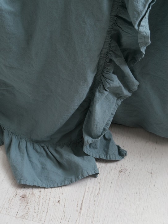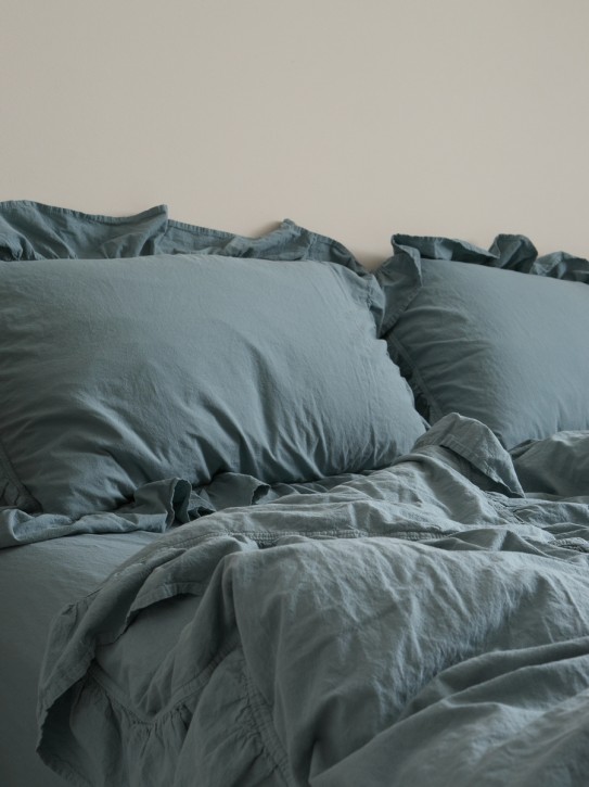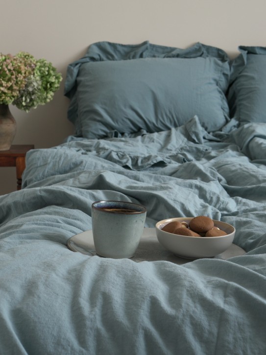 Таблица размеровПостельное белье LIMASSO EXCLUSIVE изготовлено из однотонной хлопковой ткани, более известной в быту как “вареный хлопок”. Ткань подвергается значительной тепловой и влажной обработке ещё на производстве, в результате чего она немного усаживается и приобретает лёгкий жатый эффект. Этот метод обработки ткани также называют “стиркой с камнями” (stone wash). Ткань прочная и легкая, не садится, не деформируется и не требует глажки. На ощупь постельное белье мягкое, нежное и воздушное, как говорят, “тело в нём дышит”. Минимализм цветов в сочетании с роскошной фактурой украсят и усовершенствуют ваш интерьер. На пододеяльнике рюш и застёжка на пуговицах. На двух наволочках также есть рюш. Ширина рюша – 10 см.