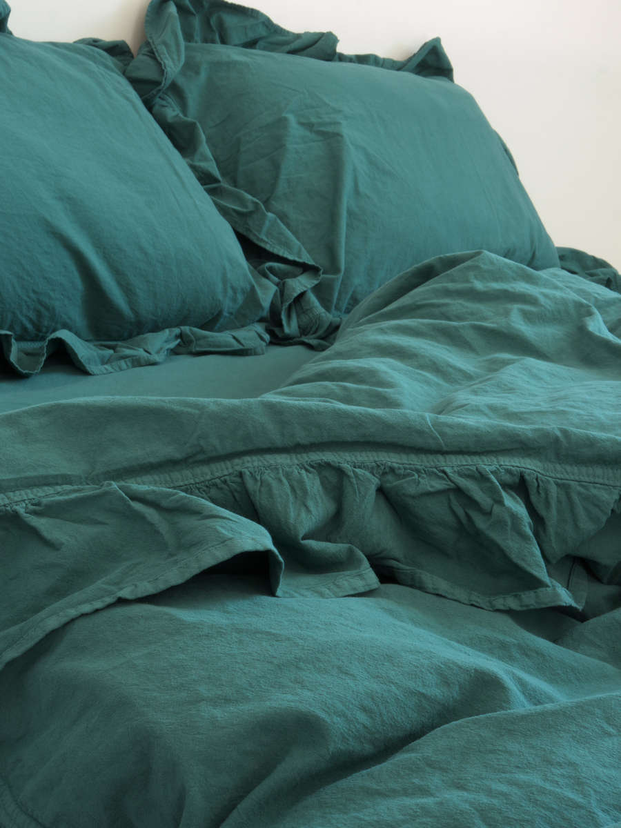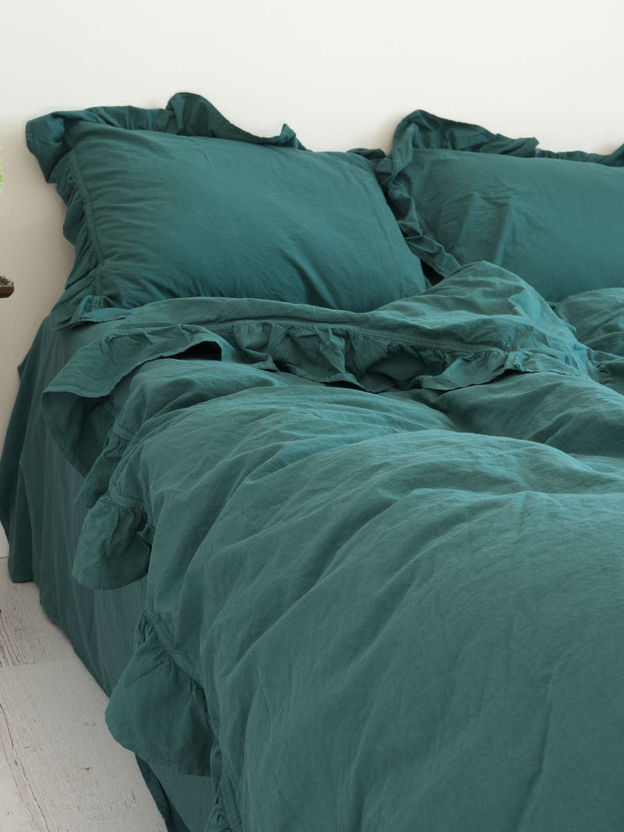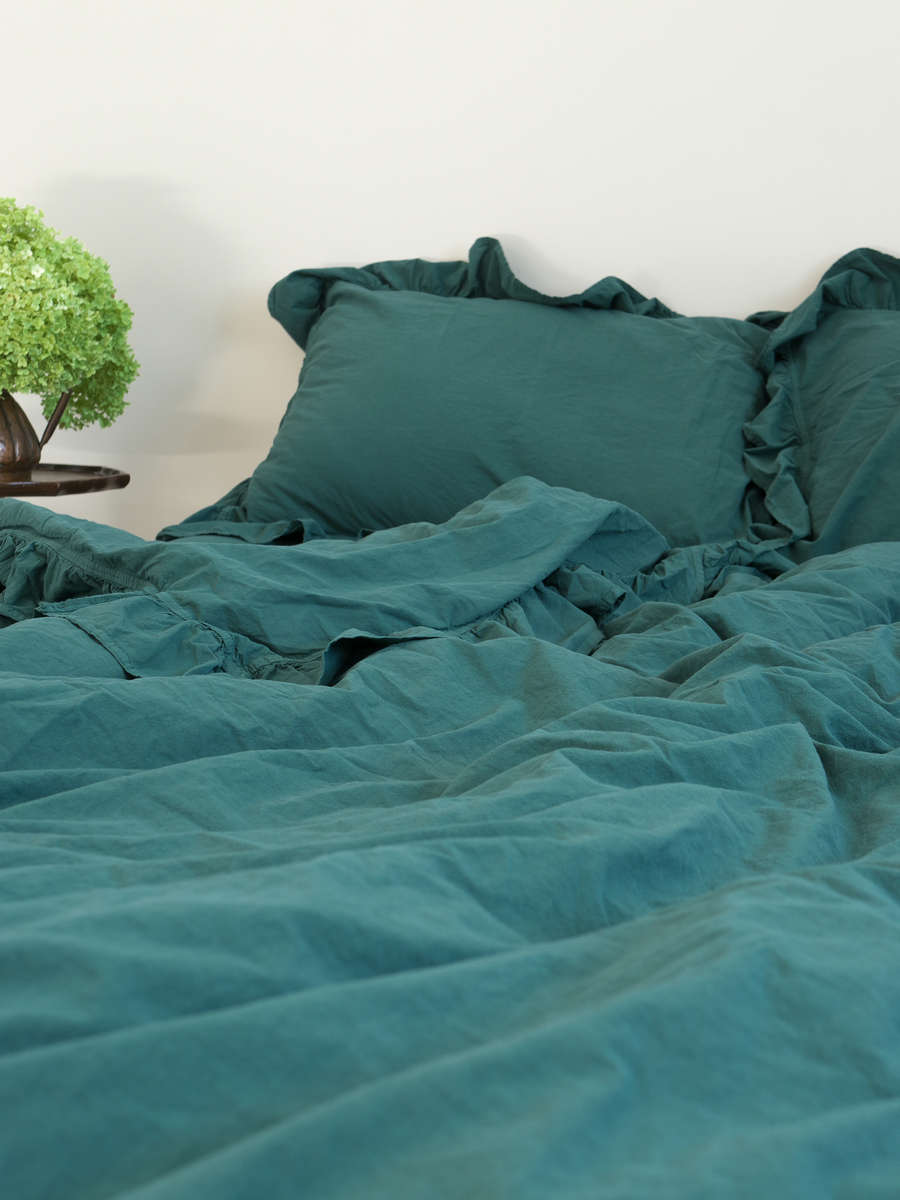 Таблица размеровПостельное белье LIMASSO EXCLUSIVE изготовлено из однотонной хлопковой ткани, более известной в быту как “вареный хлопок”. Ткань подвергается значительной тепловой и влажной обработке ещё на производстве, в результате чего она немного усаживается и приобретает лёгкий жатый эффект. Этот метод обработки ткани также называют “стиркой с камнями” (stone wash). Ткань прочная и легкая, не садится, не деформируется и не требует глажки. На ощупь постельное белье мягкое, нежное и воздушное, как говорят, “тело в нём дышит”. Минимализм цветов в сочетании с роскошной фактурой украсят и усовершенствуют ваш интерьер. На пододеяльнике рюш и застёжка на пуговицах. На двух наволочках также есть рюш. Ширина рюша – 10 см.