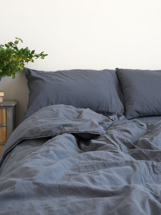 Таблица размеровПостельное белье изготовлено из однотонной хлопковой ткани, в быту более известно как “вареный хлопок”. Ткань еще на производстве подвергается значительной тепловой и влажной обработке, в результате чего происходит ее усадка с приобретением незначительного тисненого эффекта. Этот метод обработки ткани еще называют “стирка с камнями” (stone wash). Ткань крепкая и легкая, не садится, не деформируется и не нуждается в глажке. На ощупь постельное белье мягкое, нежное и воздушное, как говорится, тело в нем дышит. Минимализм красок в сочетании с роскошной фактурой – украсят и усовершенствуют ваш интерьер.