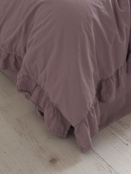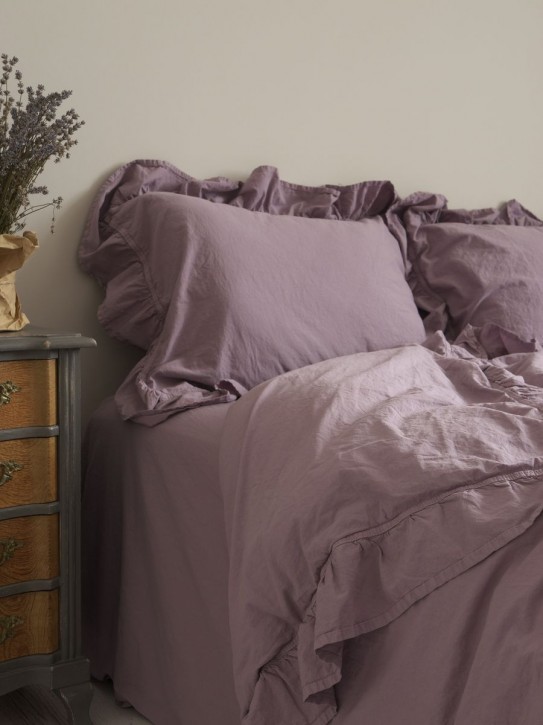 Таблица размеровПостельное белье LIMASSO EXCLUSIVE изготовлено из однотонной хлопковой ткани, более известной в быту как “вареный хлопок”. Ткань подвергается значительной тепловой и влажной обработке ещё на производстве, в результате чего она немного усаживается и приобретает лёгкий жатый эффект. Этот метод обработки ткани также называют “стиркой с камнями” (stone wash). Ткань прочная и легкая, не садится, не деформируется и не требует глажки. На ощупь постельное белье мягкое, нежное и воздушное, как говорят, “тело в нём дышит”. Минимализм цветов в сочетании с роскошной фактурой украсят и усовершенствуют ваш интерьер. На пододеяльнике рюш и застёжка на пуговицах. На двух наволочках также есть рюш. Ширина рюша – 10 см.