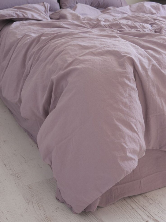Таблица размеровПостельное белье изготовлено из однотонной хлопковой ткани, в быту более известно как “вареный хлопок”. Ткань еще на производстве подвергается значительной тепловой и влажной обработке, в результате чего происходит ее усадка с приобретением незначительного тисненого эффекта. Этот метод обработки ткани еще называют “стирка с камнями” (stone wash). Ткань крепкая и легкая, не садится, не деформируется и не нуждается в глажке. На ощупь постельное белье мягкое, нежное и воздушное, как говорится, тело в нем дышит. Минимализм красок в сочетании с роскошной фактурой – украсят и усовершенствуют ваш интерьер.