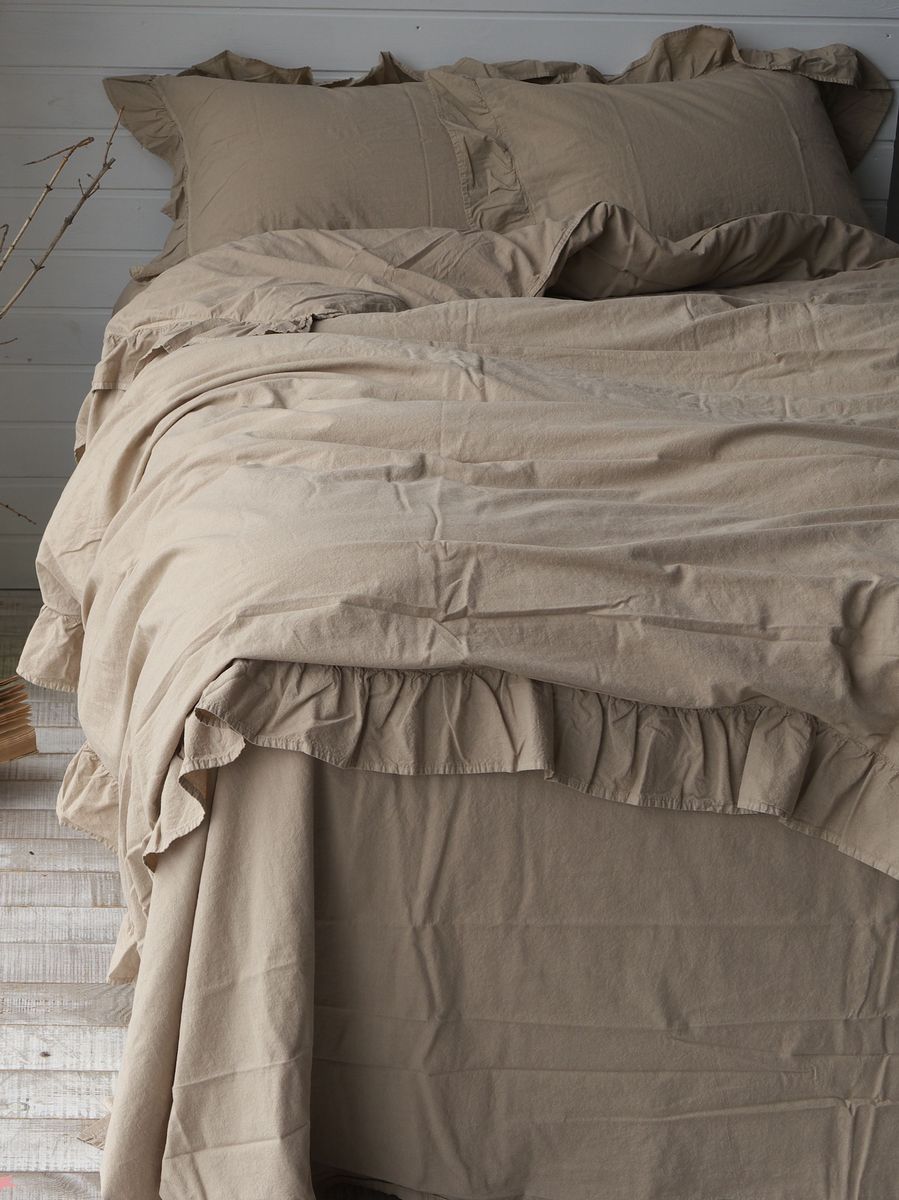 Таблица размеровПостельное белье LIMASSO EXCLUSIVE изготовлено из однотонной хлопковой ткани, более известной в быту как “вареный хлопок”. Ткань подвергается значительной тепловой и влажной обработке ещё на производстве, в результате чего она немного усаживается и приобретает лёгкий жатый эффект. Этот метод обработки ткани также называют “стиркой с камнями” (stone wash). Ткань прочная и легкая, не садится, не деформируется и не требует глажки. На ощупь постельное белье мягкое, нежное и воздушное, как говорят, “тело в нём дышит”. Минимализм цветов в сочетании с роскошной фактурой украсят и усовершенствуют ваш интерьер. На пододеяльнике рюш и застёжка на пуговицах. На двух наволочках также есть рюш. Ширина рюша – 10 см.