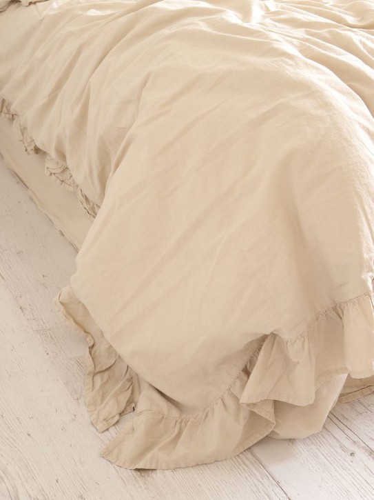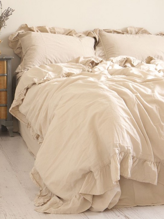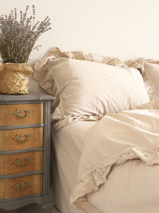 Таблица размеровПостельное белье LIMASSO EXCLUSIVE изготовлено из однотонной хлопковой ткани, более известной в быту как “вареный хлопок”. Ткань подвергается значительной тепловой и влажной обработке ещё на производстве, в результате чего она немного усаживается и приобретает лёгкий жатый эффект. Этот метод обработки ткани также называют “стиркой с камнями” (stone wash). Ткань прочная и легкая, не садится, не деформируется и не требует глажки. На ощупь постельное белье мягкое, нежное и воздушное, как говорят, “тело в нём дышит”. Минимализм цветов в сочетании с роскошной фактурой украсят и усовершенствуют ваш интерьер. На пододеяльнике рюш и застёжка на пуговицах. На двух наволочках также есть рюш. Ширина рюша – 10 см.