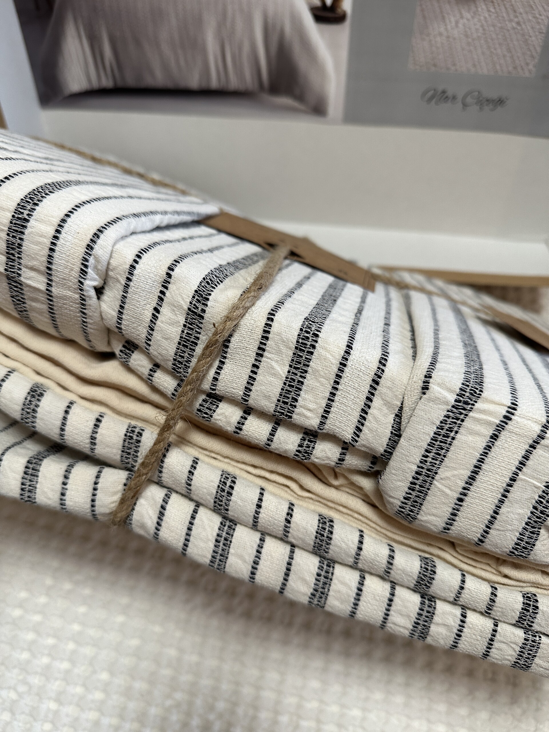 Постільна білизна виготовлена з бавовняної тканини, у побуті більш відома як “варена бавовна”. Тканина ще на виробництві піддається значній тепловій та вологій обробці, внаслідок чого відбувається її усадка з придбанням незначного тисненого ефекту. Цей метод обробки тканини ще називають “прання з камінням” (stone wash). Тканина міцна та легка, не сідає, не деформується і не потребує прасування. На дотик постільна білизна м’яка, ніжна та повітряна, як мовиться, тіло в ній дихає. Мінімалізм фарб в поєднанні з розкішною фактурою – прикрасять і вдосконалять ваш інтерʼєр. Рекомендації щодо догляду: Прання при температурі 30 градусів, без використання кондиціонера та відбілювачів. Сушіння звичайним способом, не в машинці