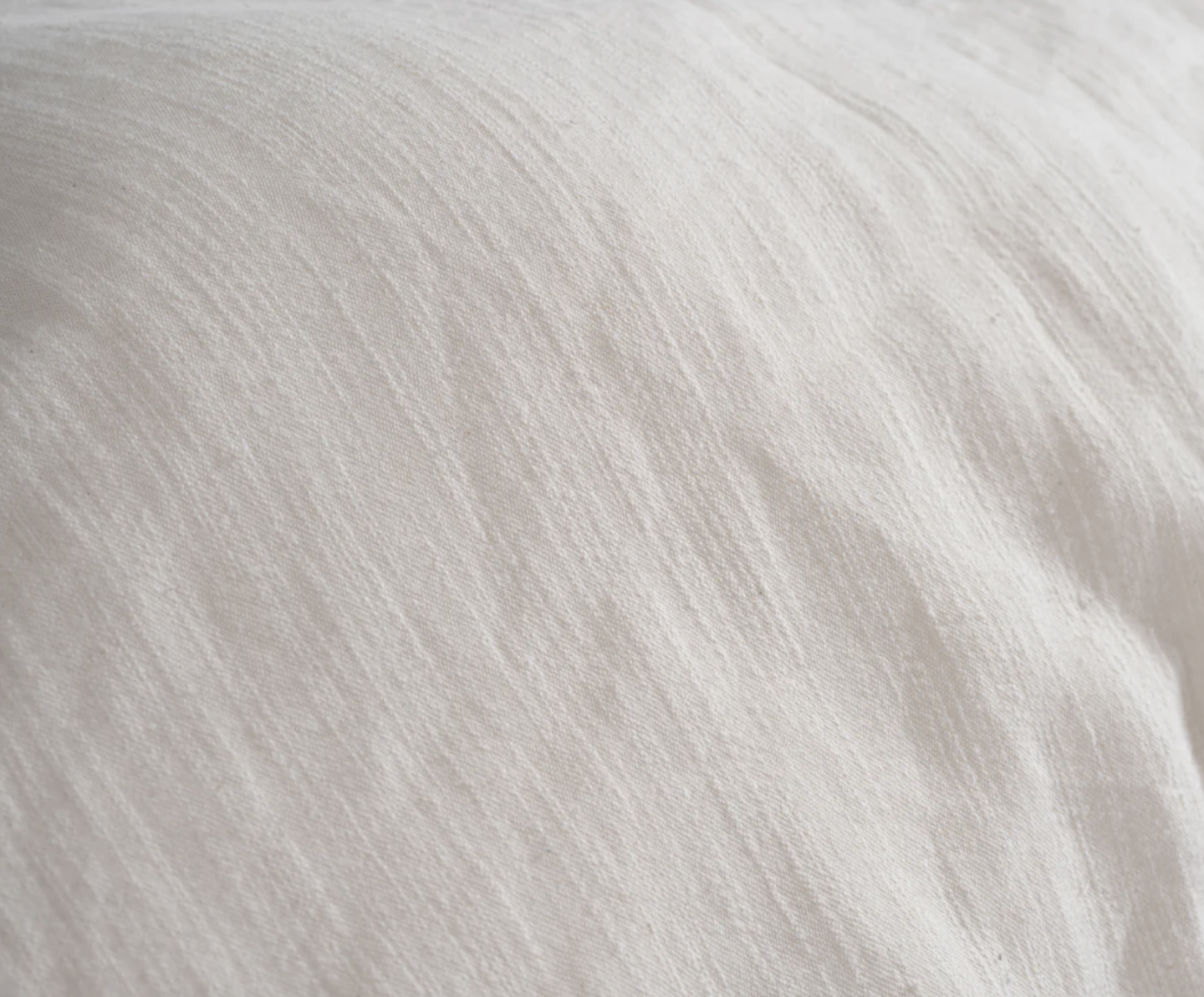 Постельное белье изготовлено из хлопковой ткани, в быту более известной как “вареный хлопок”. Ткань еще на производстве подвергается значительной термической и влажной обработке, в результате чего происходит её усадка и появляется легкий тисненый эффект. Этот метод обработки ткани также называют “стиркой с камнями” (stone wash). Ткань прочная и легкая, не садится, не деформируется и не требует глажки. На ощупь постельное белье мягкое, нежное и воздушное, обеспечивая комфорт и позволяя коже “дышать”. Минималистичная цветовая палитра в сочетании с роскошной фактурой украсит и улучшит ваш интерьер.