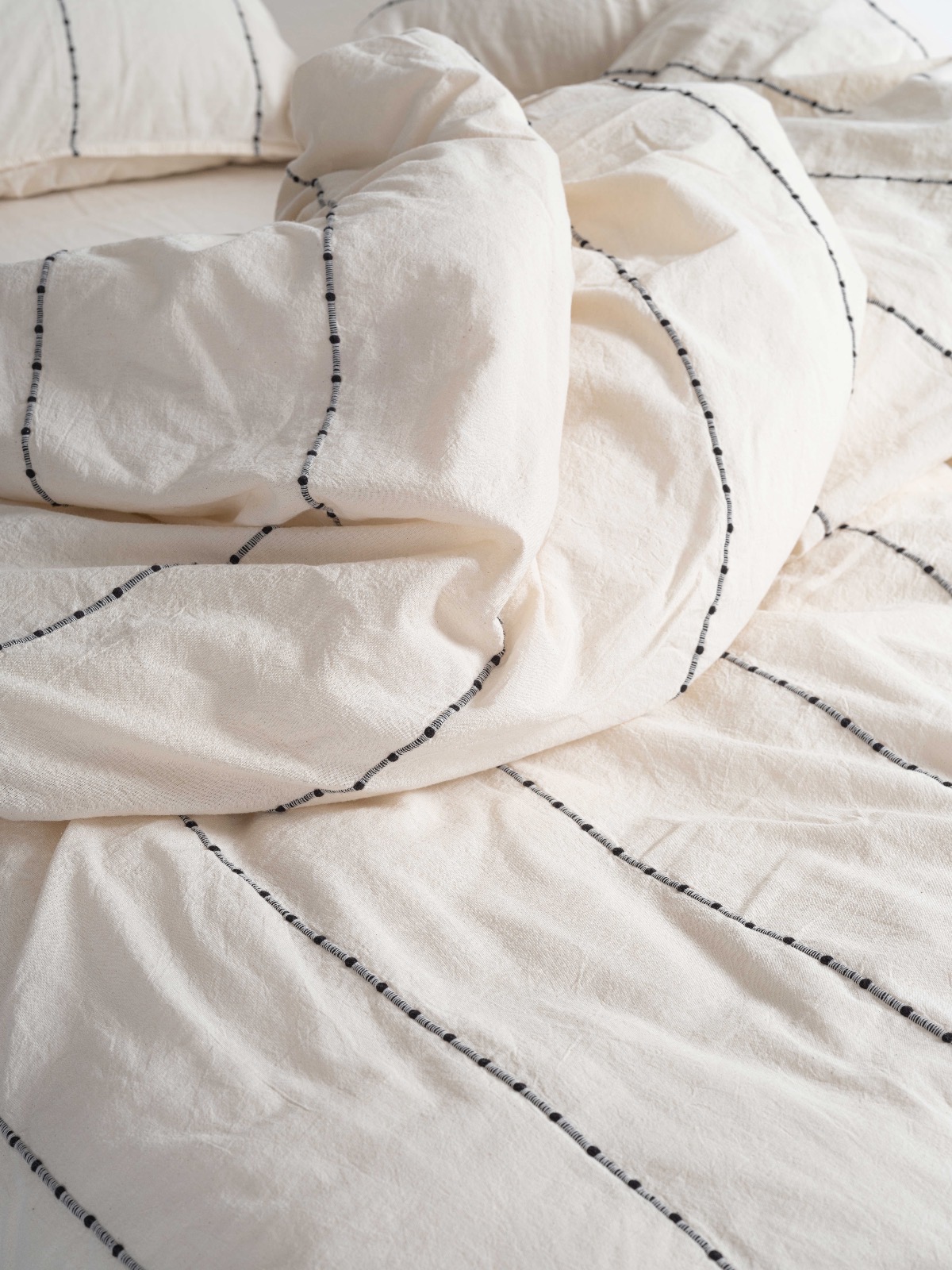Таблица размеровПостельное белье изготовлено из хлопковой ткани, в быту более известной как “вареный хлопок”. Ткань еще на производстве подвергается значительной термической и влажной обработке, в результате чего происходит её усадка и появляется легкий тисненый эффект. Этот метод обработки ткани также называют “стиркой с камнями” (stone wash). Ткань прочная и легкая, не садится, не деформируется и не требует глажки. На ощупь постельное белье мягкое, нежное и воздушное, обеспечивая комфорт и позволяя коже “дышать”. Минималистичная цветовая палитра в сочетании с роскошной фактурой украсит и улучшит ваш интерьер.