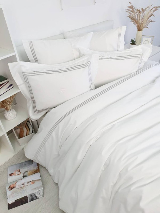 Элегантные вышивки, выполненные с вниманием к каждой детали, придают комплекту изысканный и утонченный вид, превращая его в эффектное украшение вашей спальни. Такой декор подчеркивает не только стиль, но и качество изделия, создавая атмосферу роскоши и уюта.