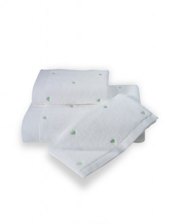 Изящный комплект хлопковых полотенец Soft Hearts с утонченной вышивкой в виде маленьких сердечек по всему полотну. Коллекция выполнена из плотного махрового полотна, которое прекрасно впитывает влагу, дышит и гипоаллергенно. Эти полотенца идеально подойдут как для классического интерьера, так и для современного. Также комплект станет отличным подарком для друзей и близких.