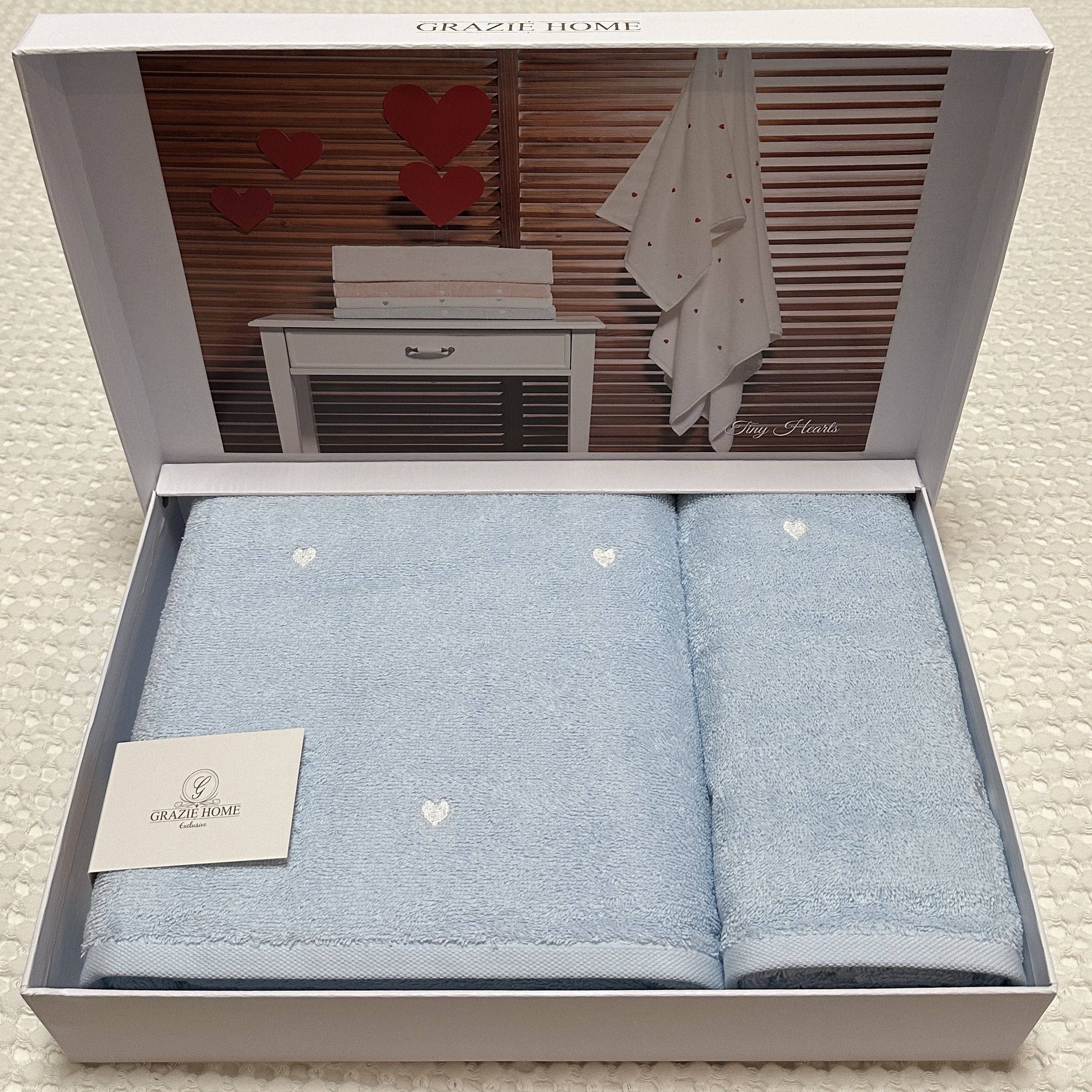 Набор полотенец Grazie Home Tiny hearts blue 2 шт (75х150,50х100)