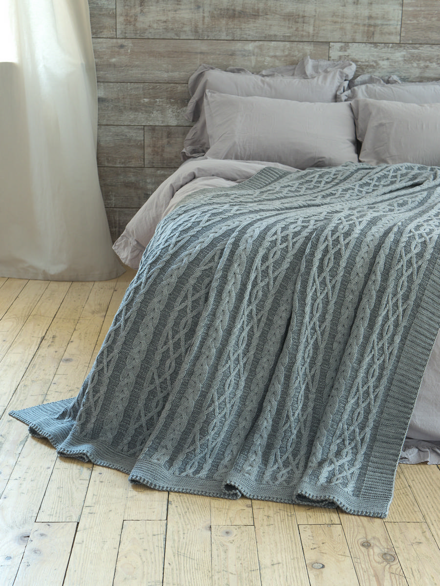 Вязаное покрывало BETIRES DOLCE. Узоры — косы. По периметру покрывала — кант. Покрывало плотное, мягкое и приятное на ощупь. Обладает высокой прочностью и светостойкостью, а также антибактериальными и гипоаллергенными свойствами.
