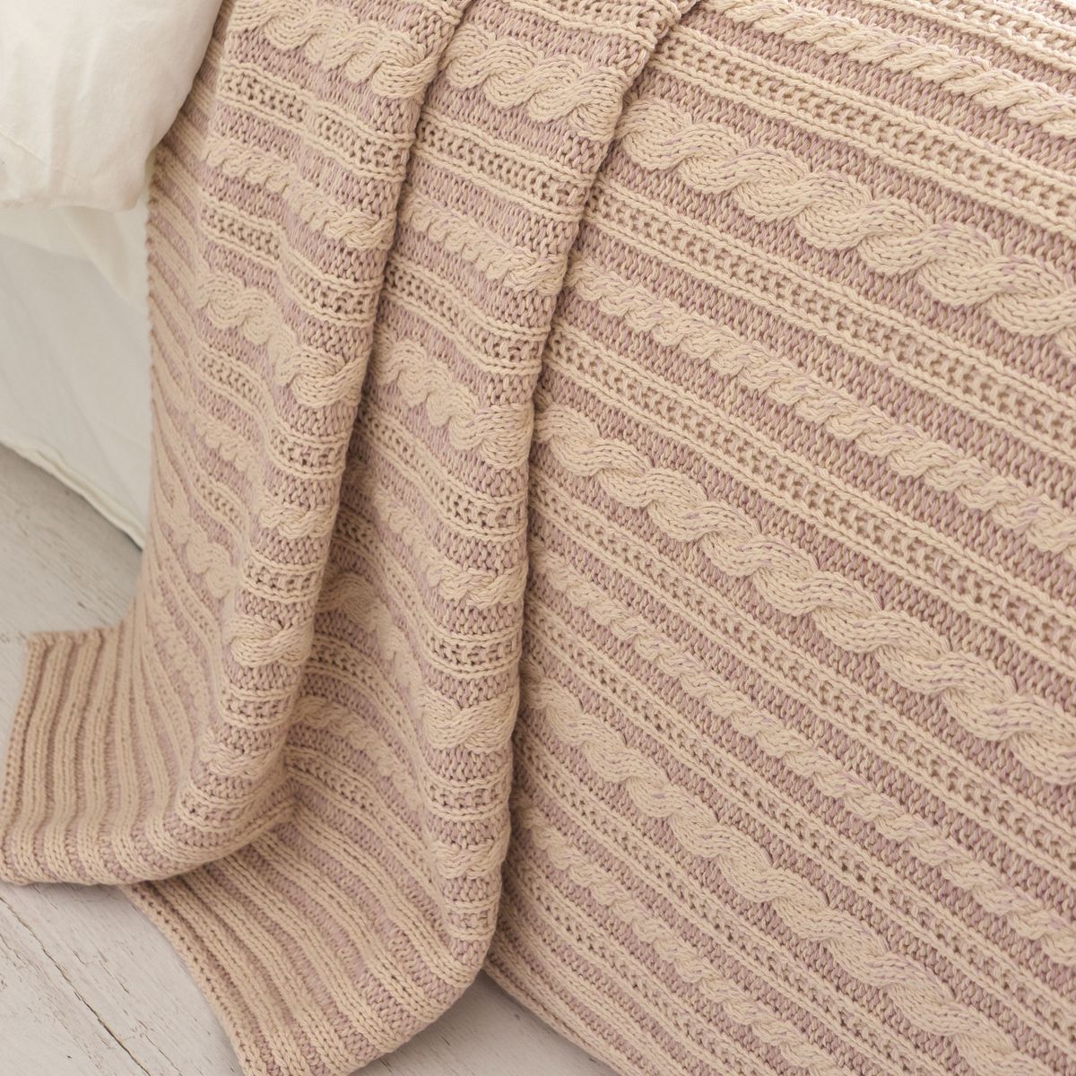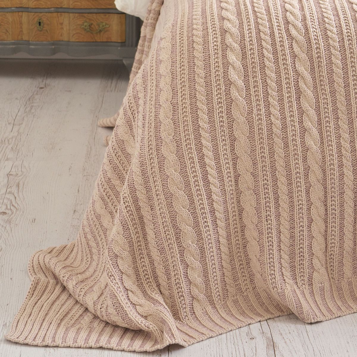 Покрывало MILANIA создано с использованием хлопковых и акриловых нитей различных цветов и оттенков. Благодаря такому сочетанию создается “меланжевый эффект”. Название ткани меланж происходит от французского слова *melange* — смесь. Меланжевые покрытия выглядят колоритно, стильно и оригинально. Вязка представляет собой косы и полосы вдоль полотна. Покрывало мягкое и приятное на ощупь, хорошо держит форму, обладает светостойкостью и гипоаллергенностью.